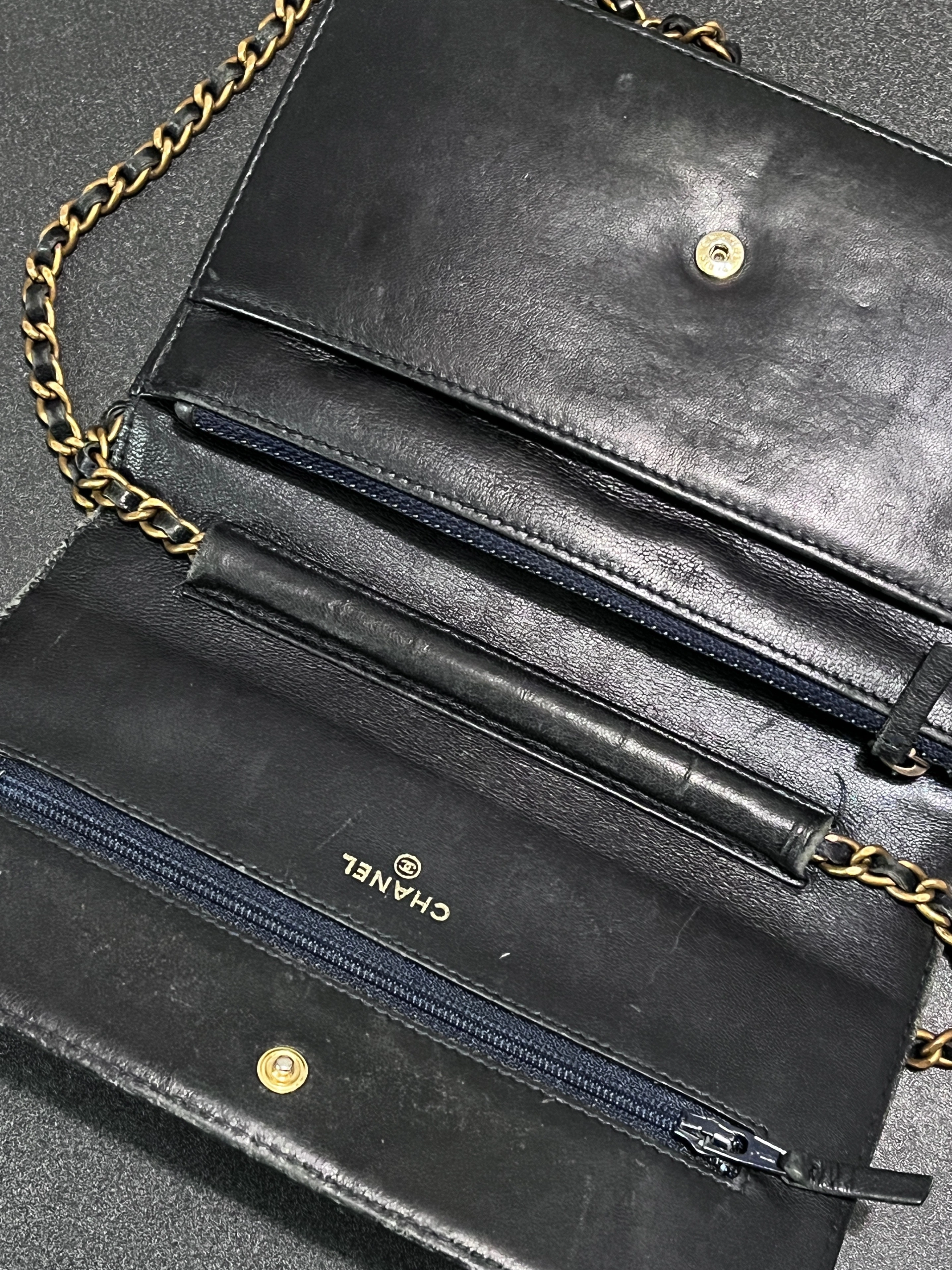 Chanel Boy Wallet On Chain Blue Lambskin GHW