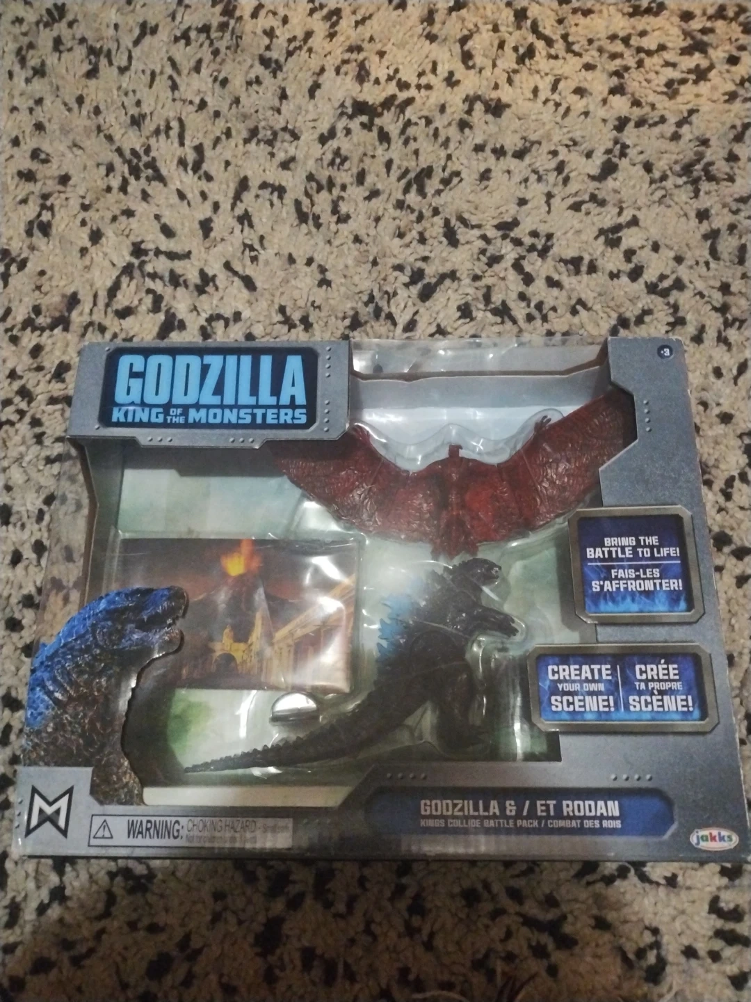 Selling a New Godzilla and Rodan Kings Collide Battle Pack from the movie Godzilla: King of the Monsters. It's made by Jakks Pacific and includes both Godzilla and Rodan figures to bring the battle to life! Create your own scene!