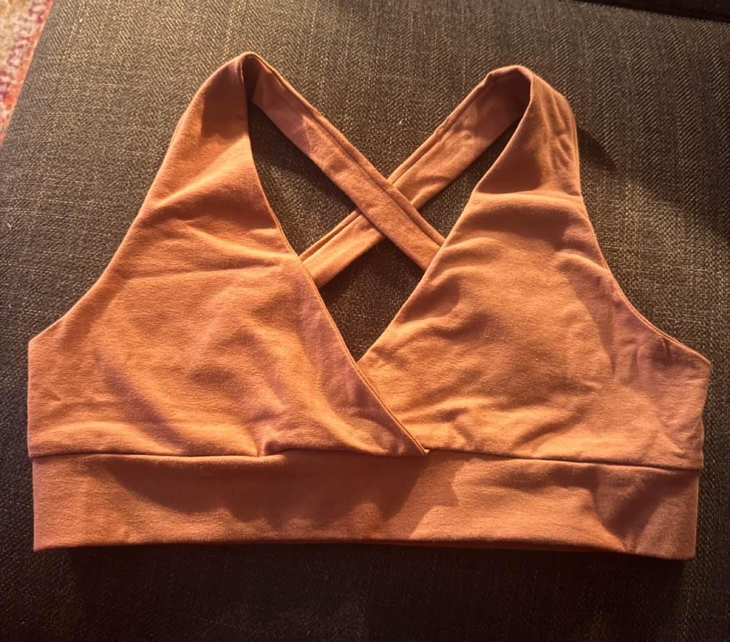Size Medium, Sienna colour. This set is perfect for workouts or just lounging around. The material feels super soft on your skin. It's in great condition and ready for a new home!