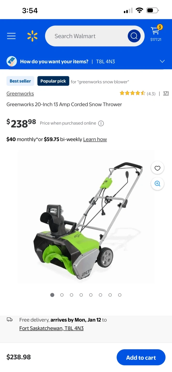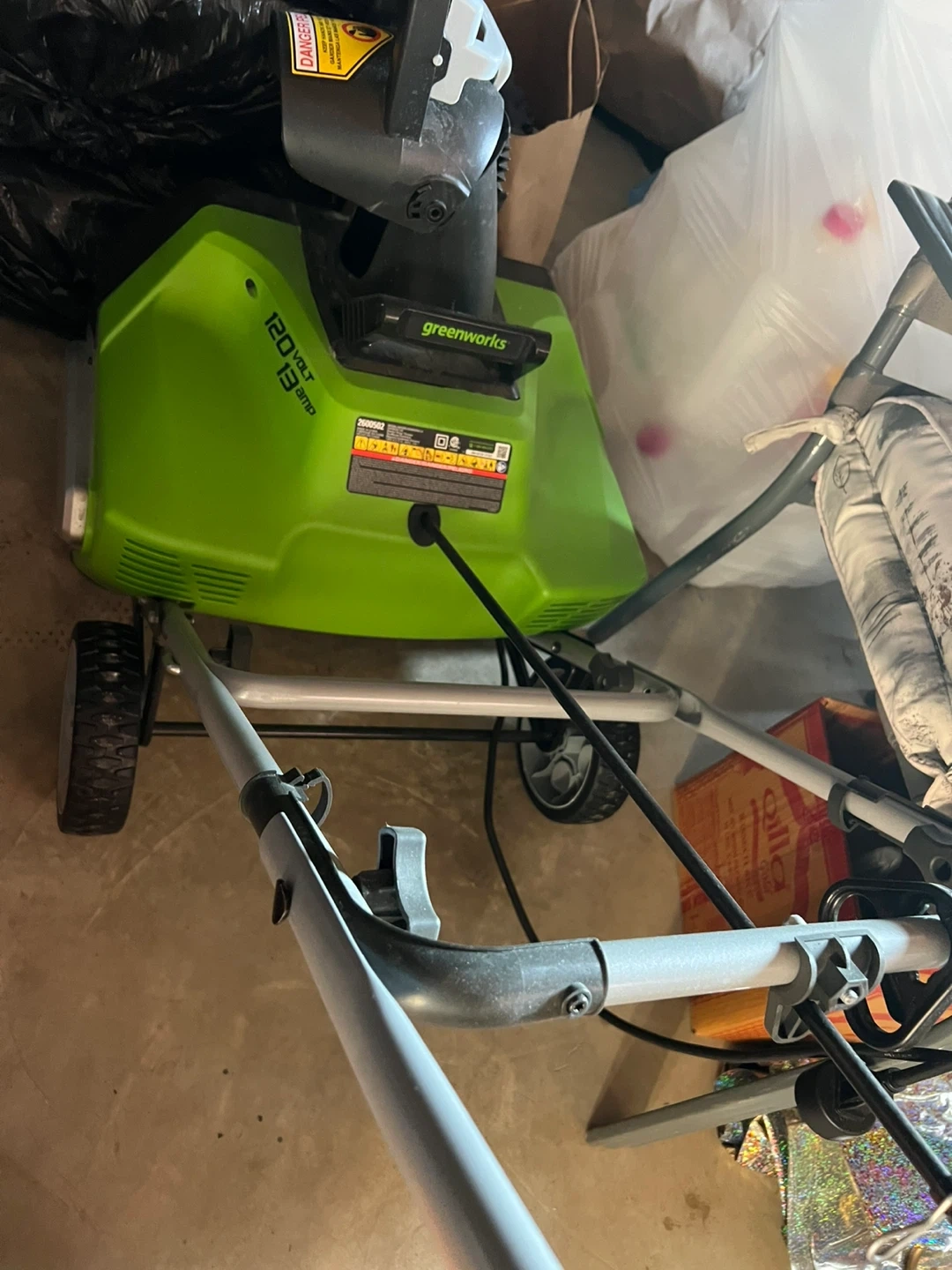 Selling a Greenworks 20-inch 13 Amp Corded Snow Thrower. It's in great shape and ready to help you clear your driveway this winter! Originally bought for $238.98.Used only once.