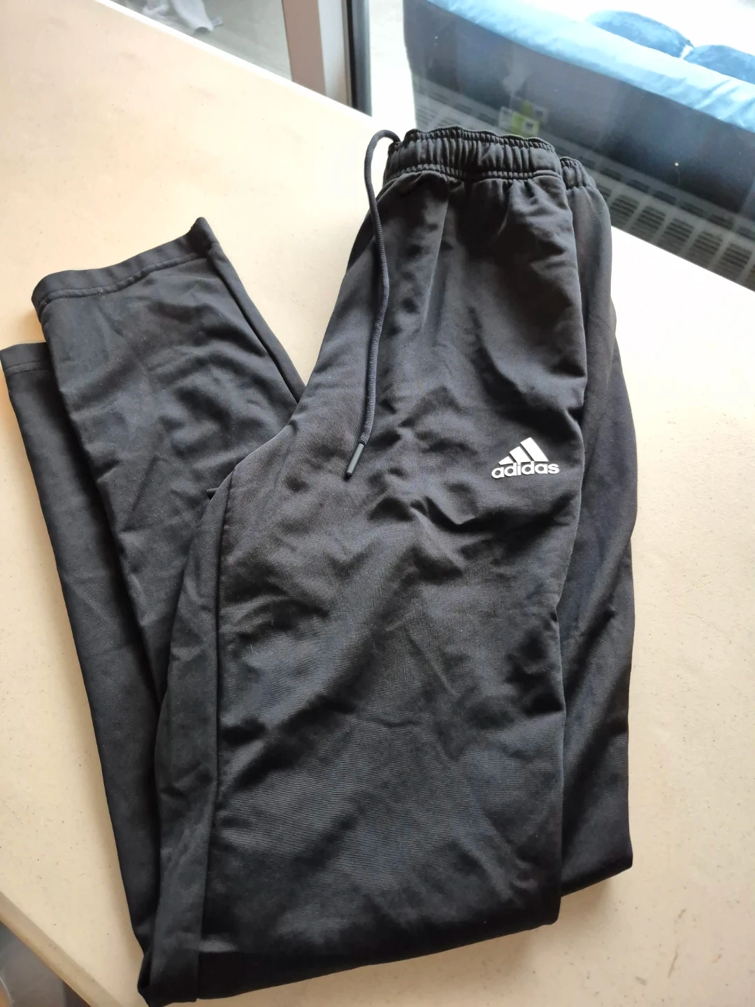 Selling a pair of Adidas black track pants in size small. Fits almost like extra small. They're in good condition and ready for a new owner. Perfect for workouts or just lounging around.