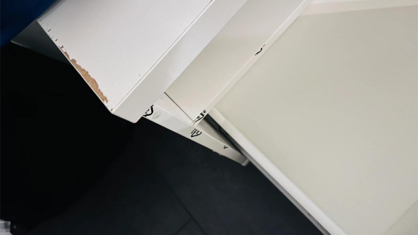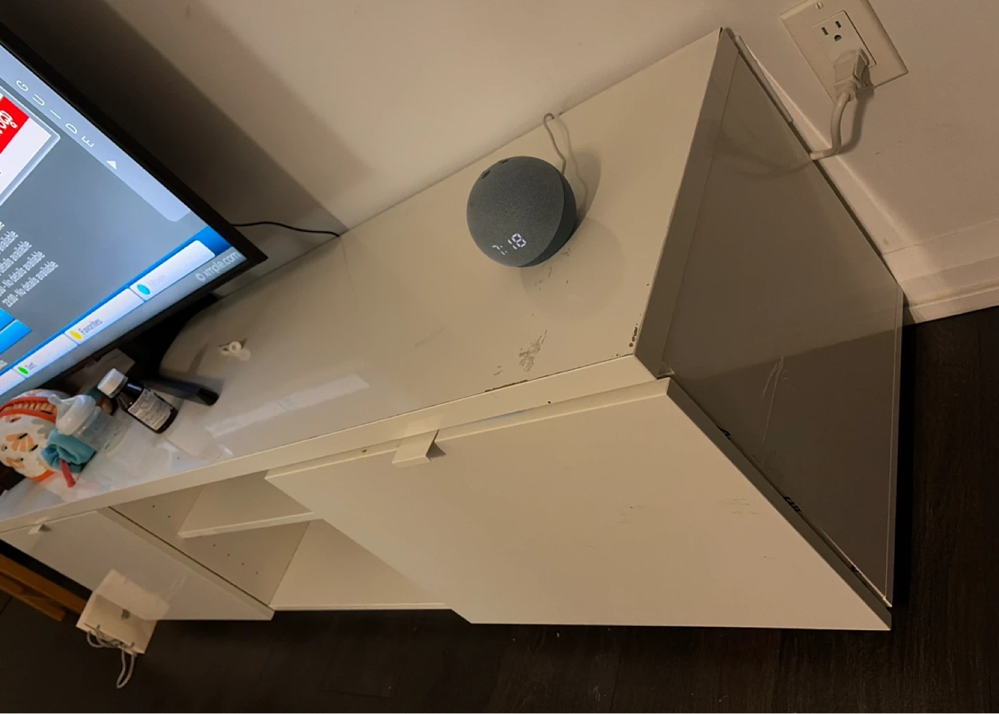 Selling a white media unit with drawers. There are some signs of use.