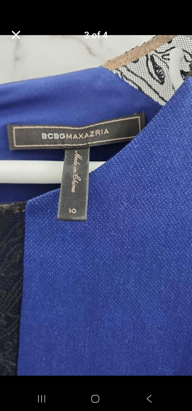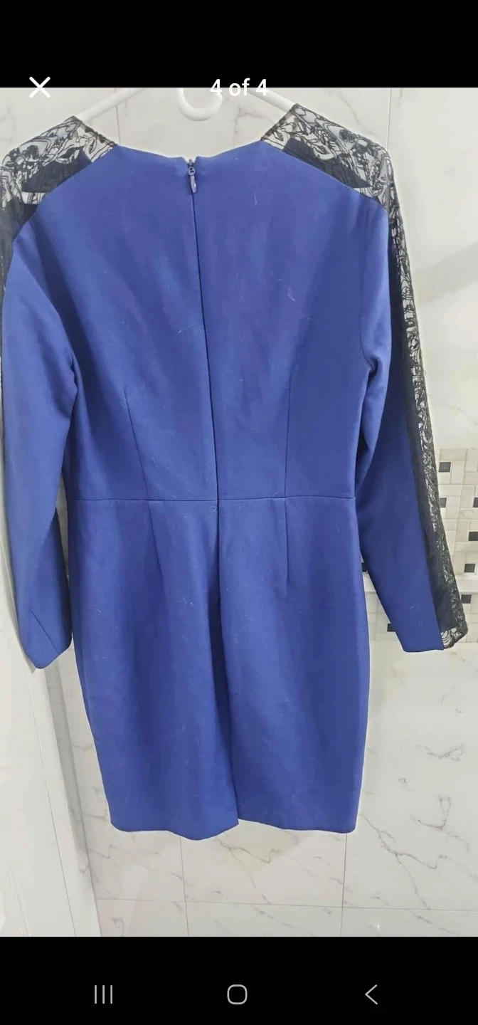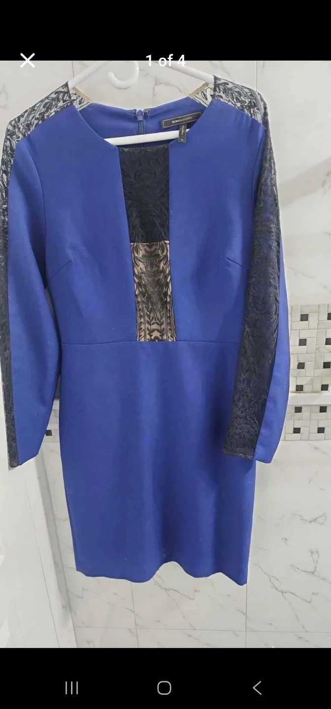 Selling a BCBGMAXAZRIA dress in a lovely blue colour with black lace detailing. It's a size 10 and in great condition! This dressis new without tags.
