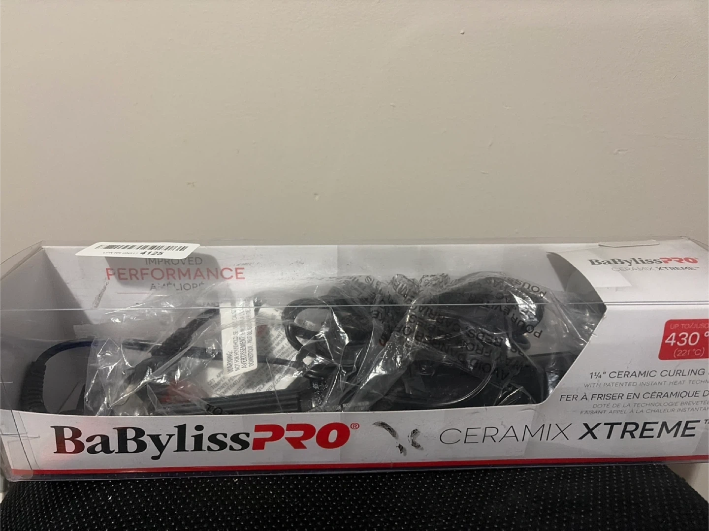 Selling a brand new BaBylissPRO Ceramix Xtreme 1 1/4" ceramic curling iron! It features instant heat technology and constant heat for consistent results. The variable temperature control goes up to 430°F (221°C). Includes a 9-ft swivel cord and comes with the original box