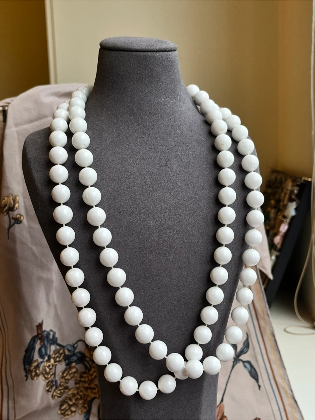Here's a lovely white beaded necklace! This is a simple, classic piece that would look great with any outfit. It's in great condition and ready for a new home!