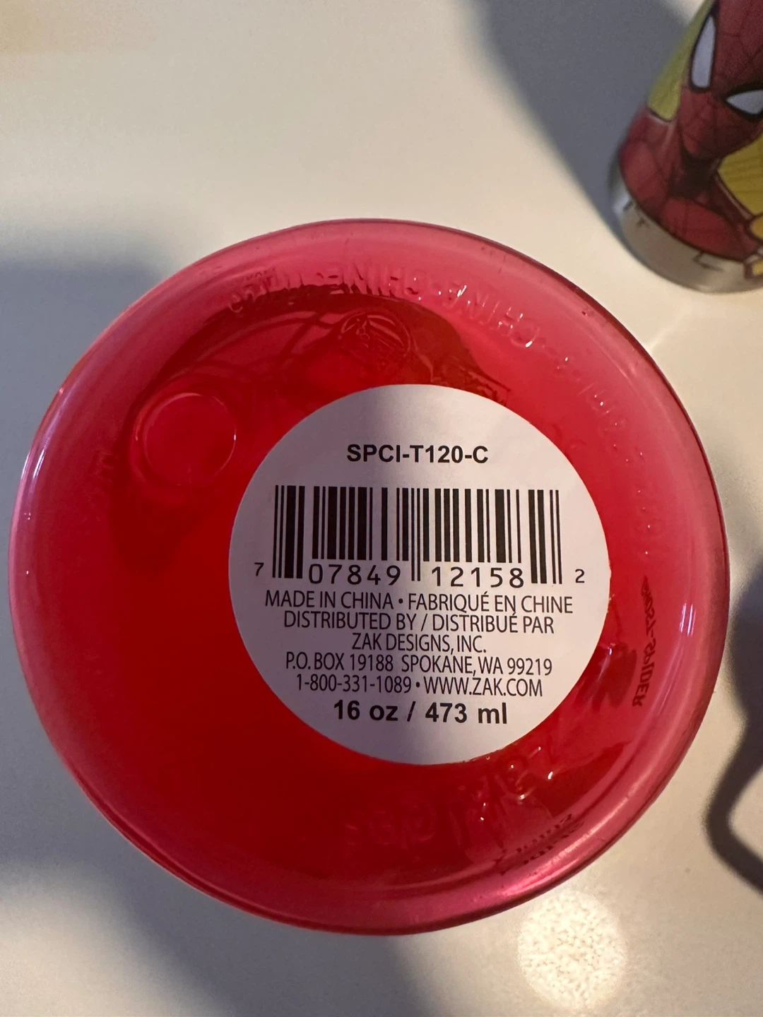 Selling a Marvel Spiderman water bottle. It's red and blue and holds 16 oz / 473 ml. Great for kids!