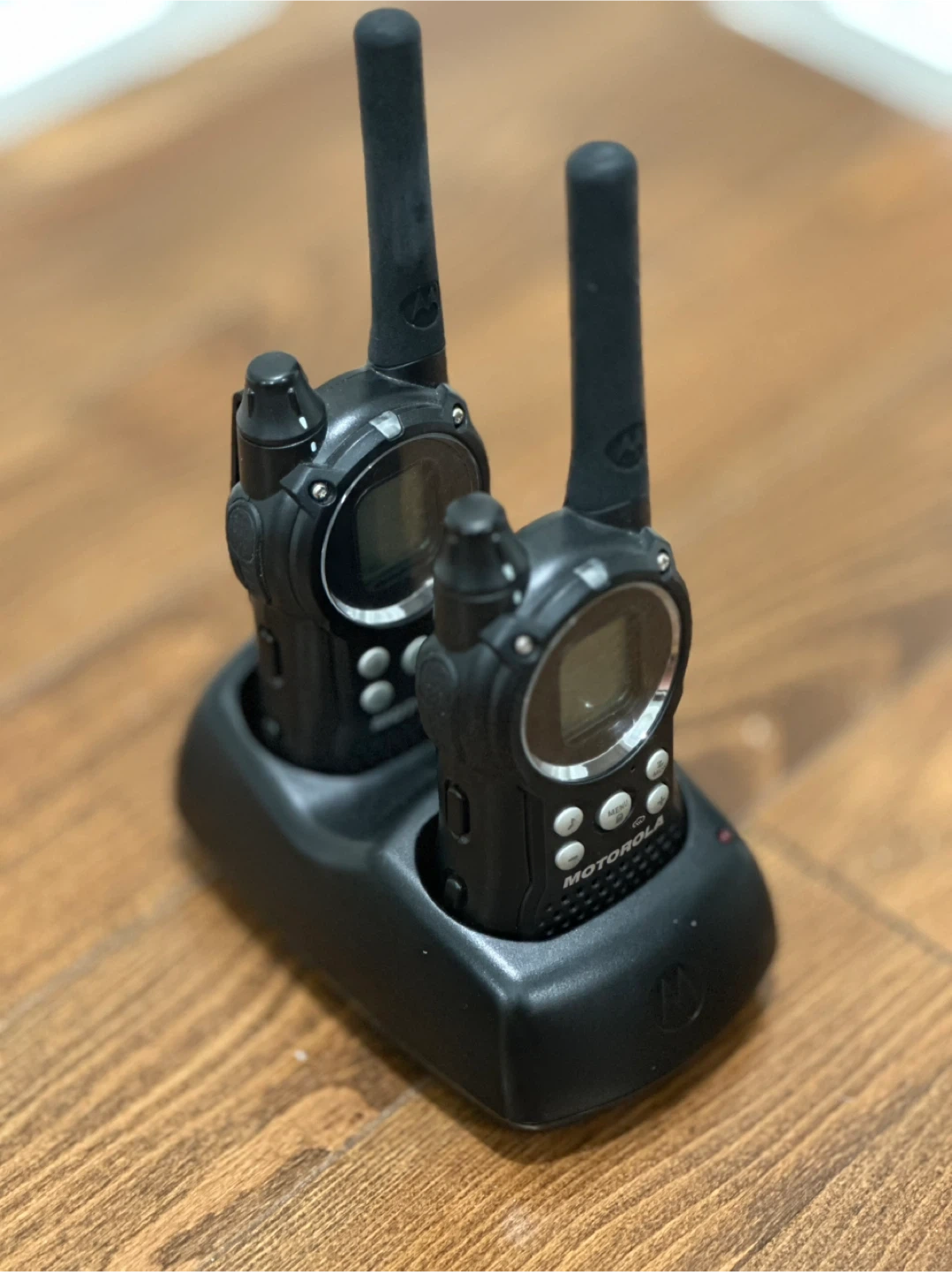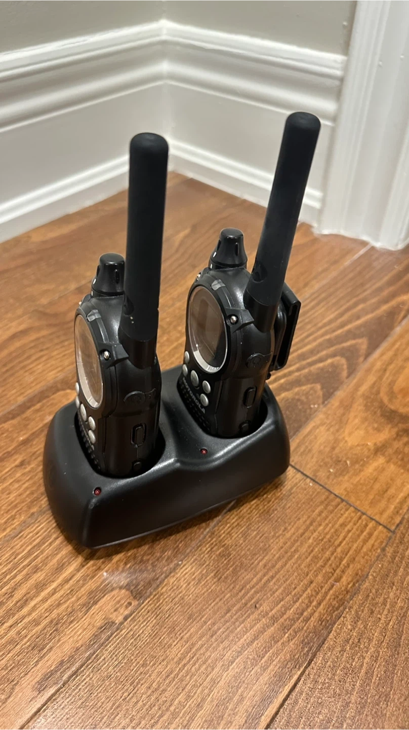 Selling a pair of Motorola two-way radios. They come with their stand, so they're always ready to go. Great for staying connected on outdoor adventures or worksites!