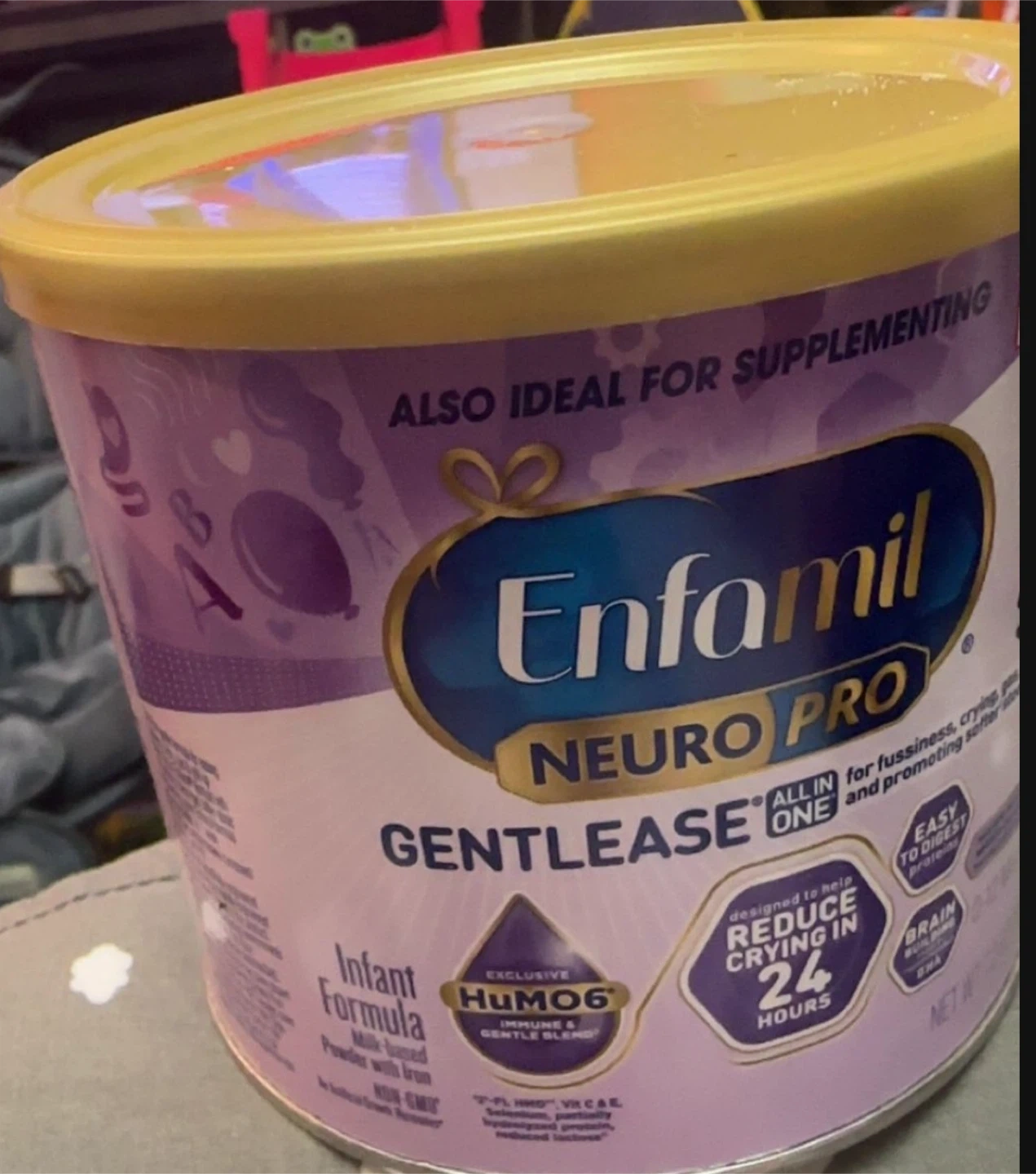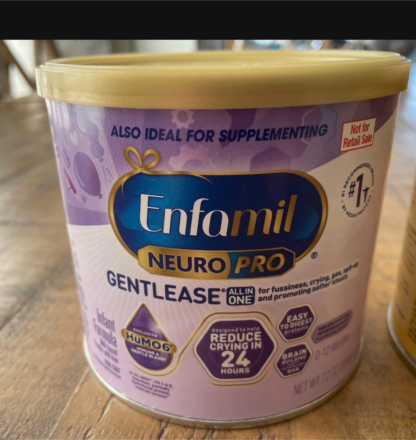 Selling a can of Enfamil NeuroPro Gentlease infant formula. It's designed to help reduce crying in 24 hours and is easy to digest. It's also brain-building and recommended for ages 0-12 months