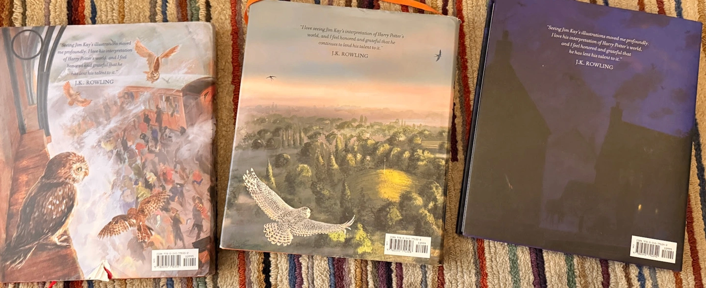 Beautiful set of the first three Harry Potter books, fully illustrated in color by Jim Kay. These are large-format hardcover editions with dust jackets. They are perfect for family reading or as a gift for any Potter fan!