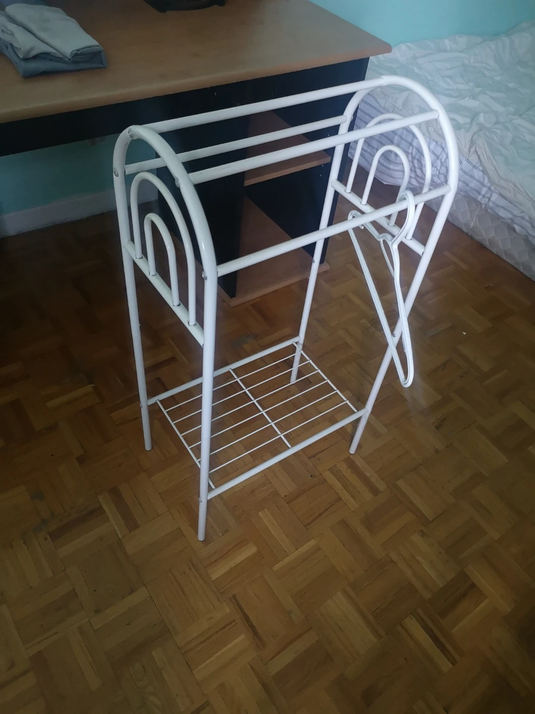 I'm selling a white metal clothes drying rack. It's in great shape and ready to help you air dry your clothes! Perfect for saving energy and keeping your clothes looking their best