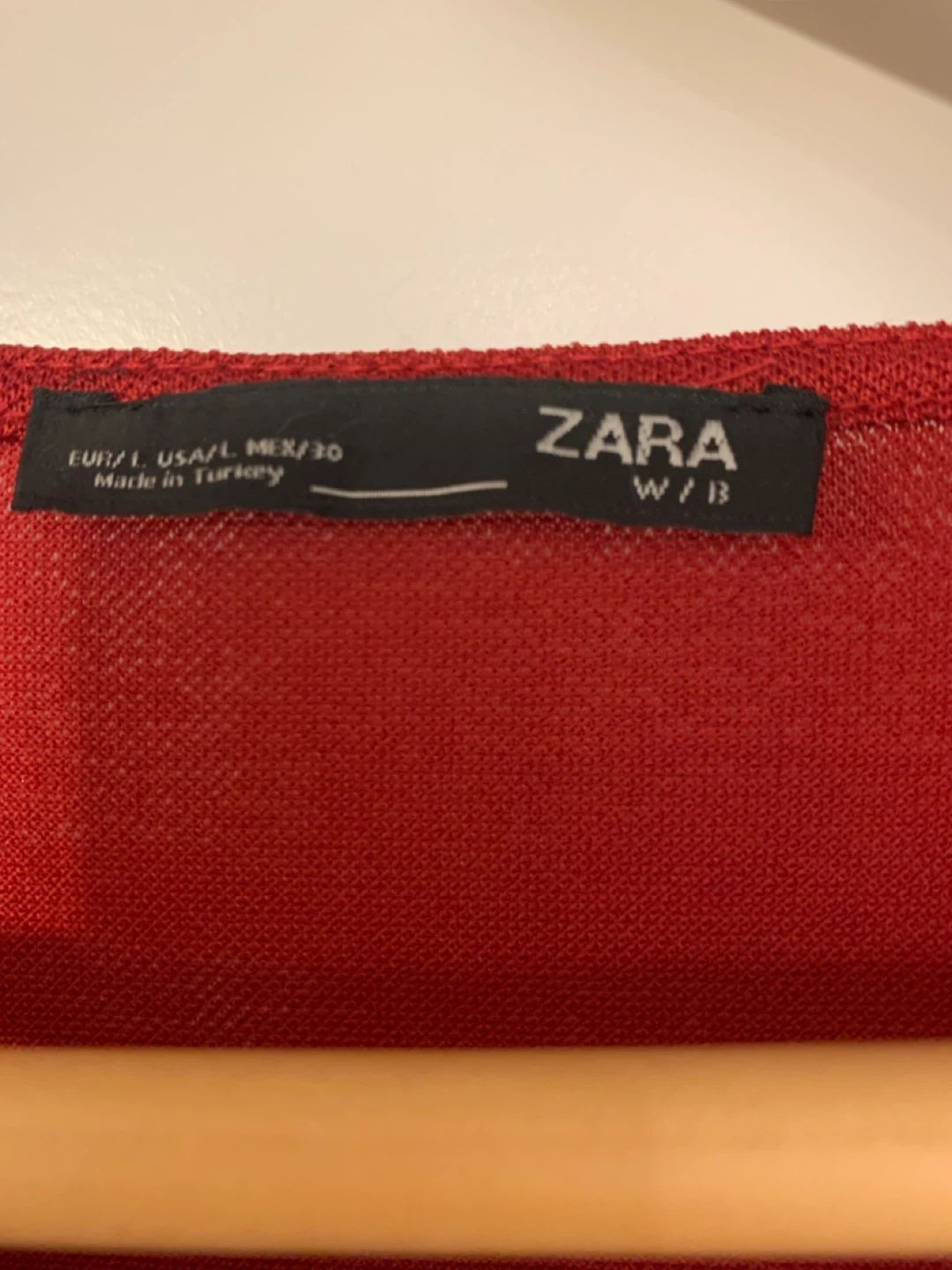 Here's a Zara red long sleeve top in size L. It has button details on the sleeves. It's in great condition!Port Coquitlam