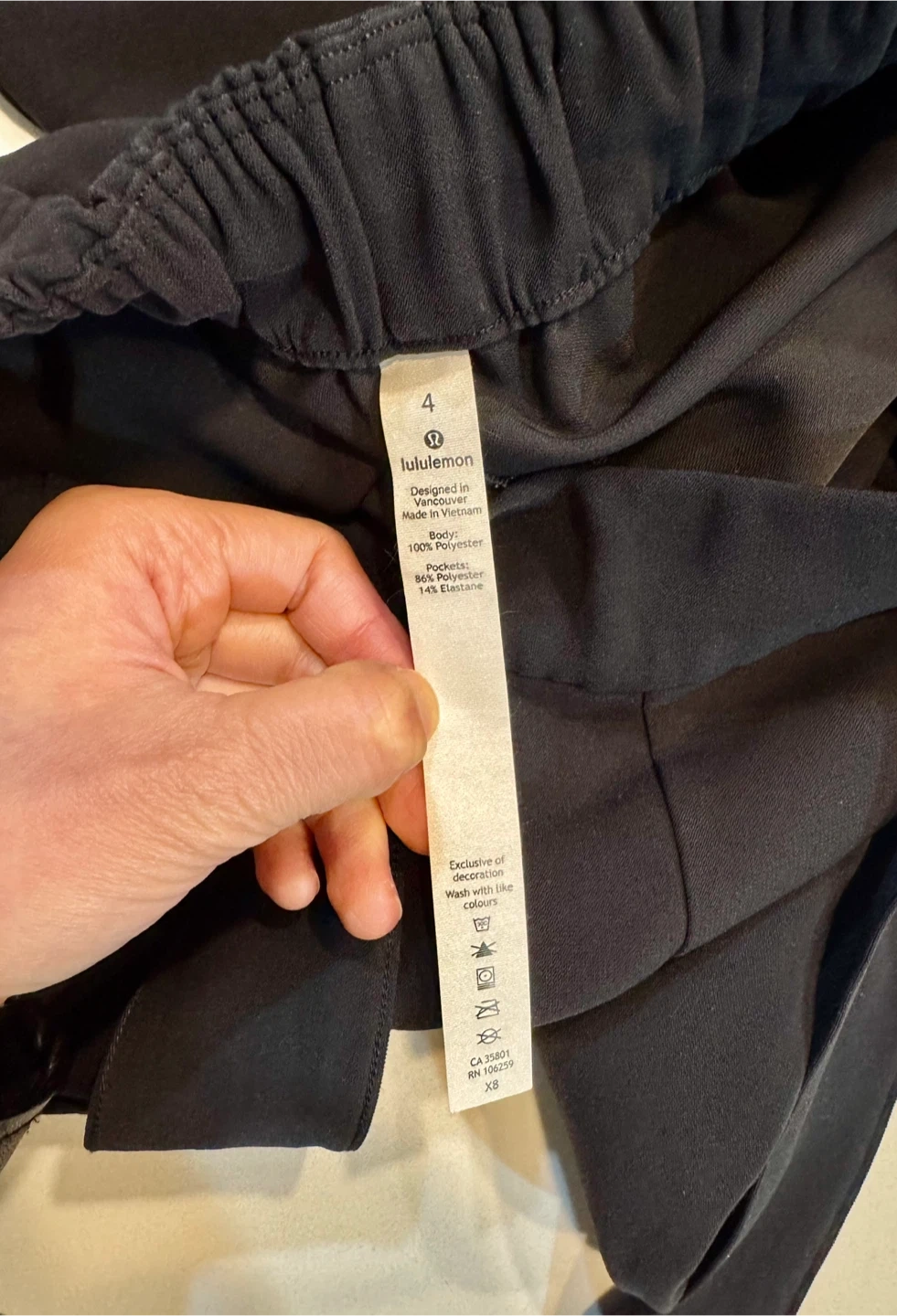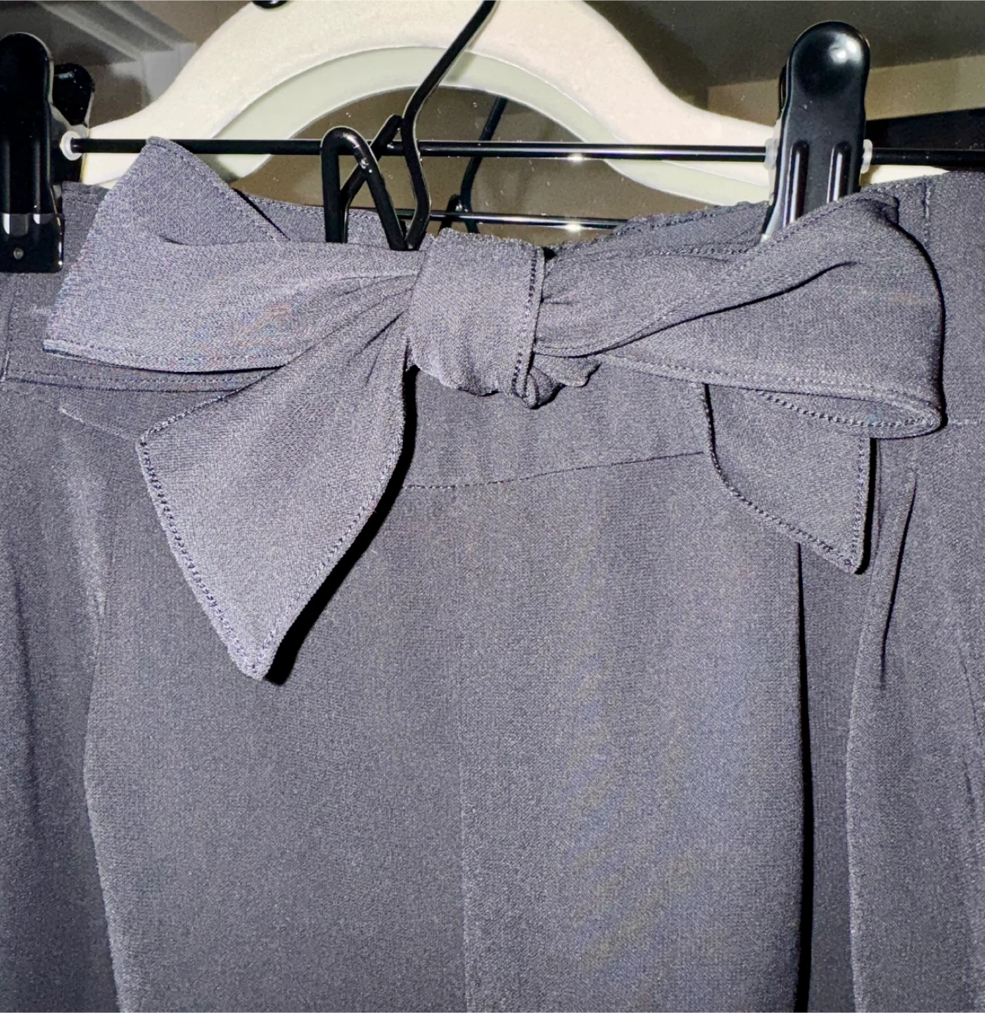 Selling a pair of black culottes! They feature a cute bow detail at the waist. The size appears to be around 31 inches. Great for a stylish and comfortable look!