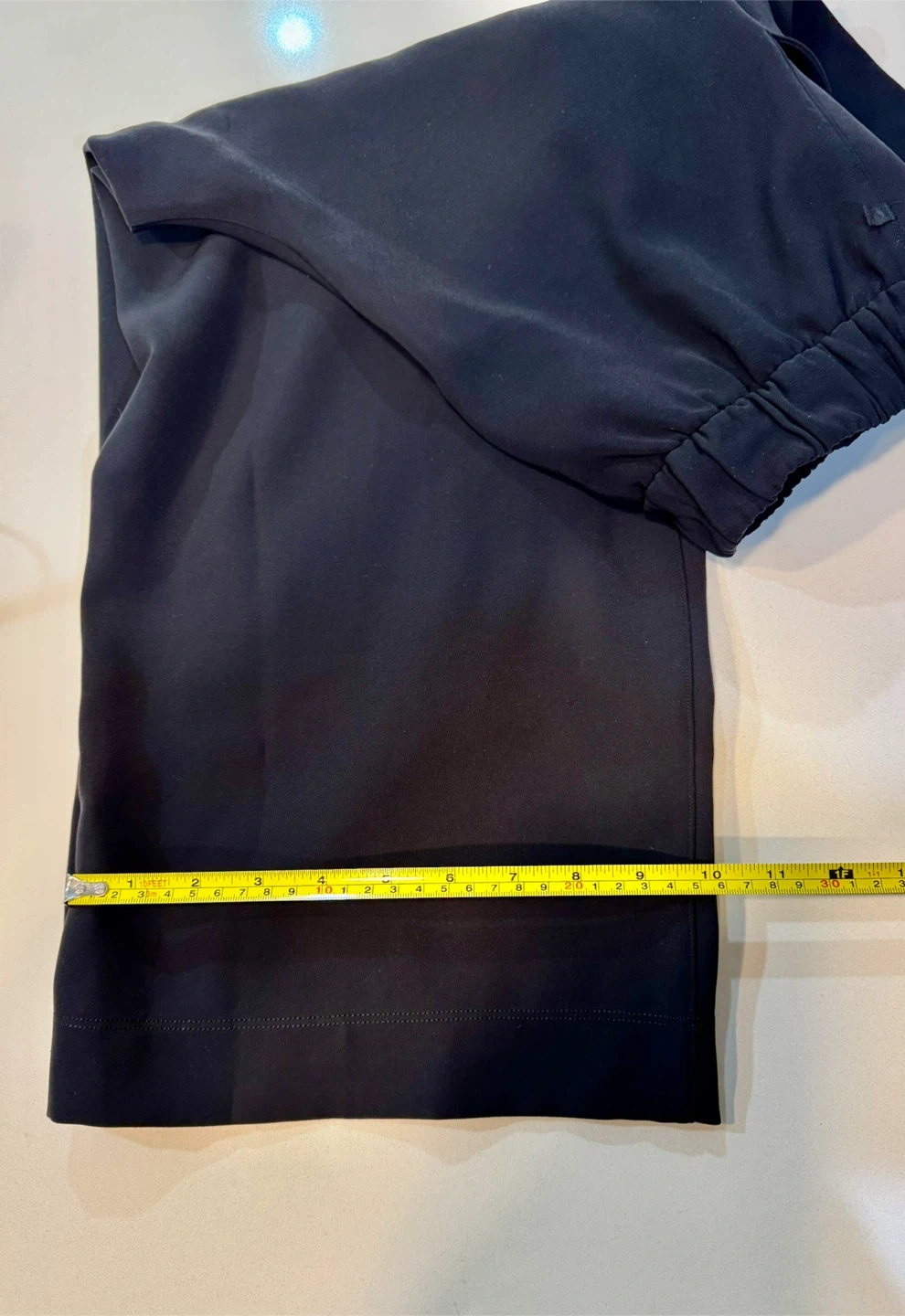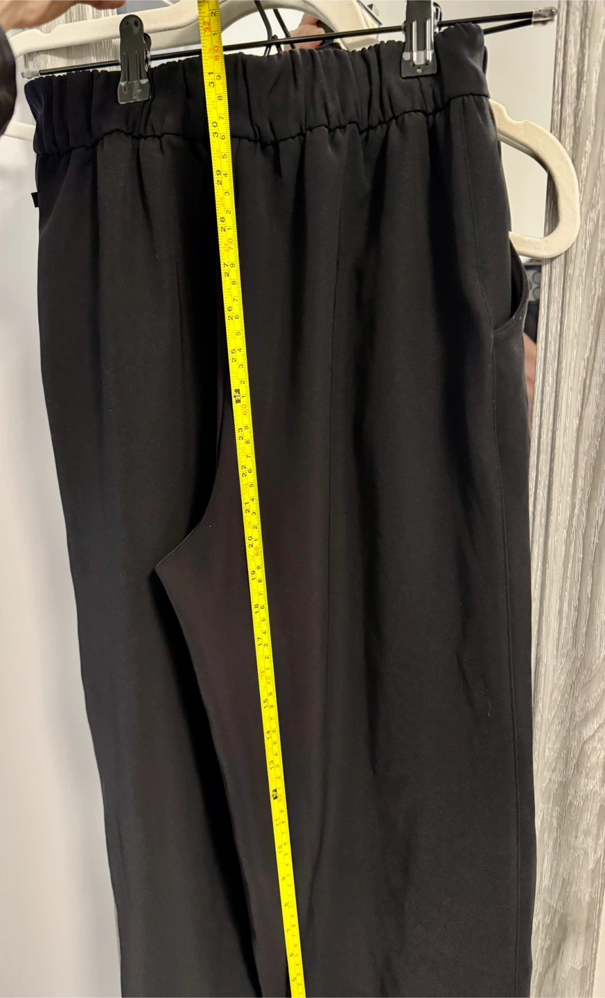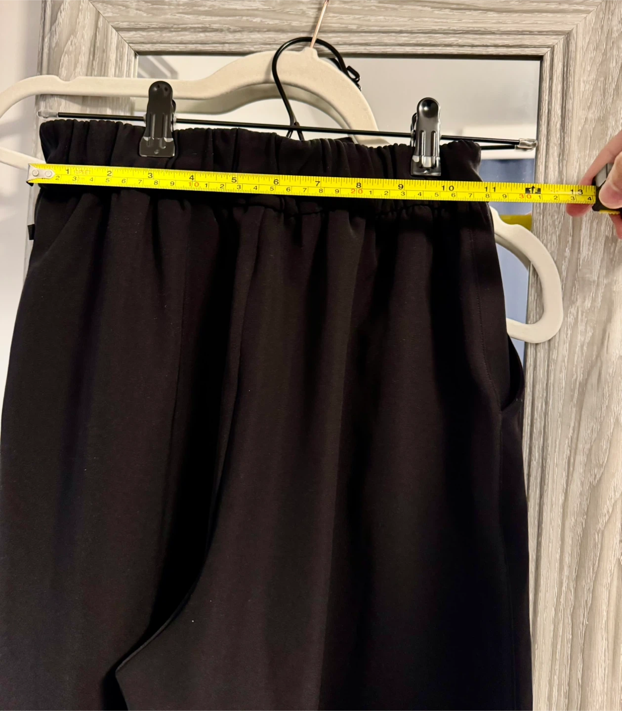 Selling a pair of black culottes! They feature a cute bow detail at the waist. The size appears to be around 31 inches. Great for a stylish and comfortable look!