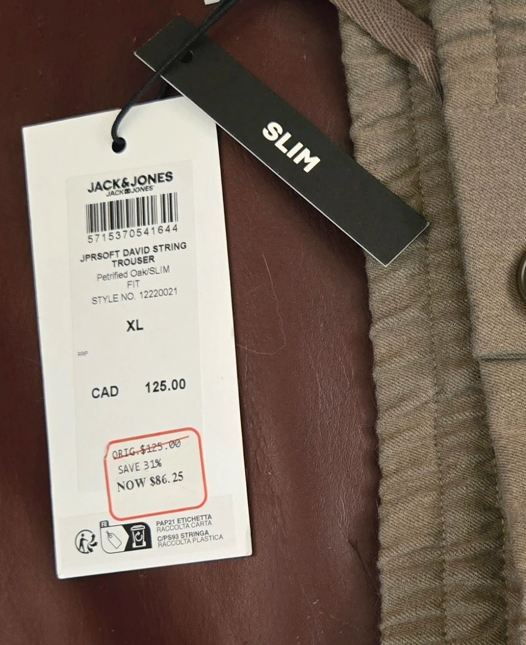 JACK&JONES Petrified Oak Slim Fit Trousers XL
