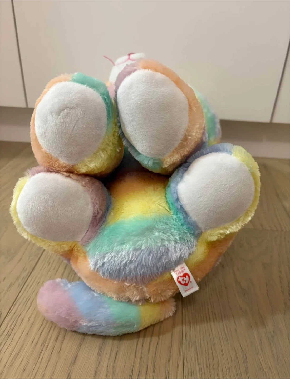 Selling a Ty Beanie Boos plush named Heather! It's a super cute cat with rainbow pastel colours and big glittery eyes. Perfect for any Beanie Boo collector or cat lover. Like new, still has tags. It was just displayed and never played with.