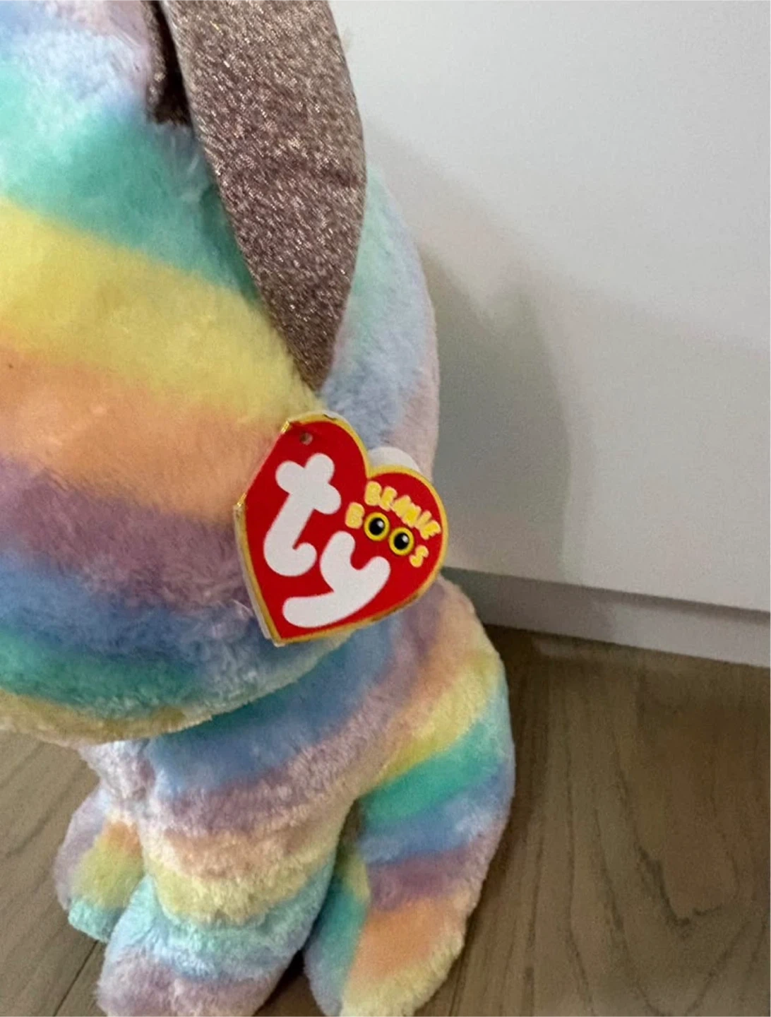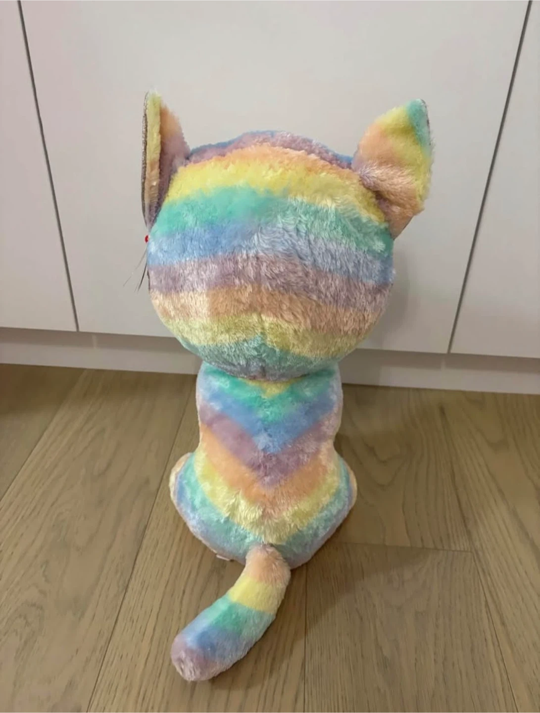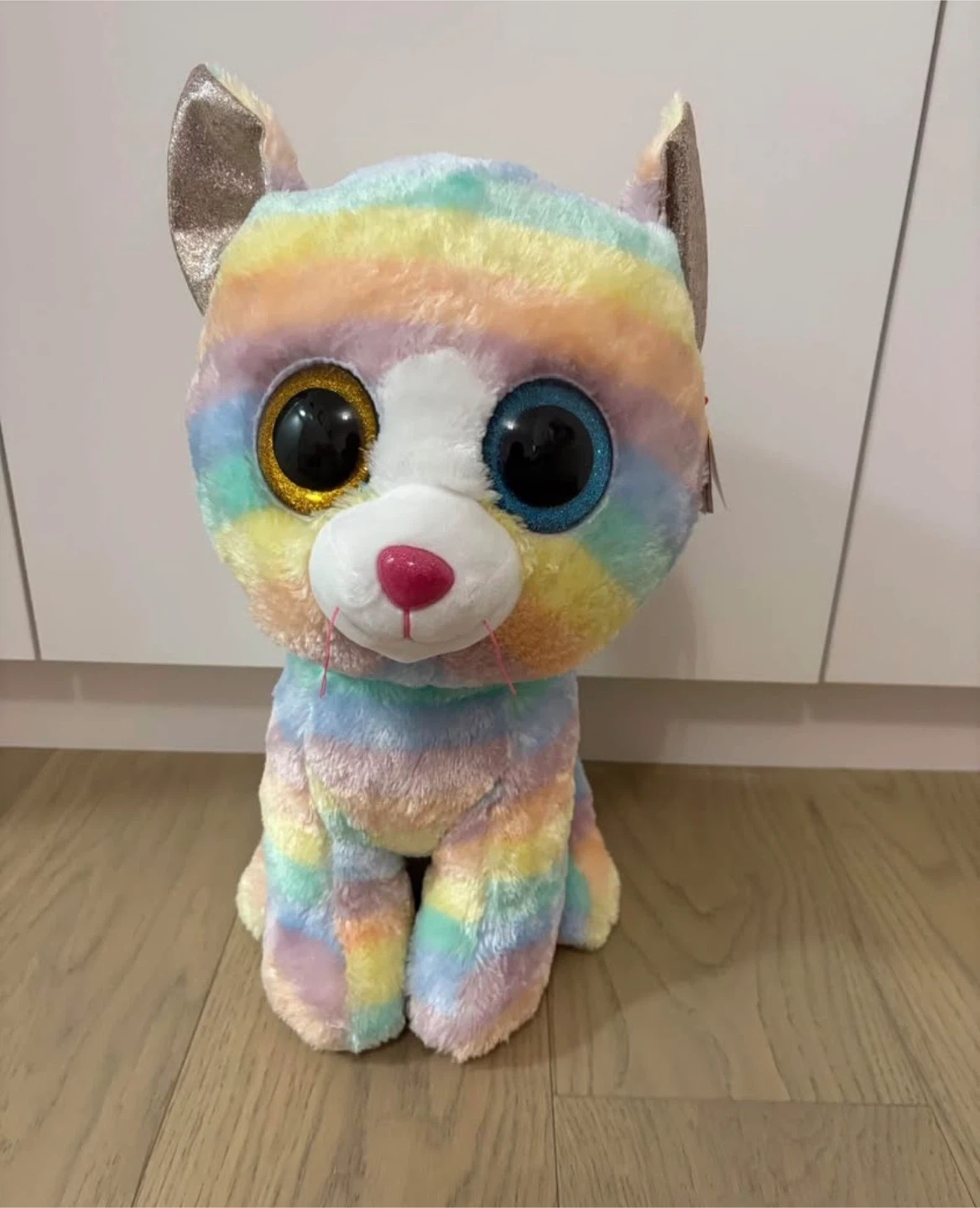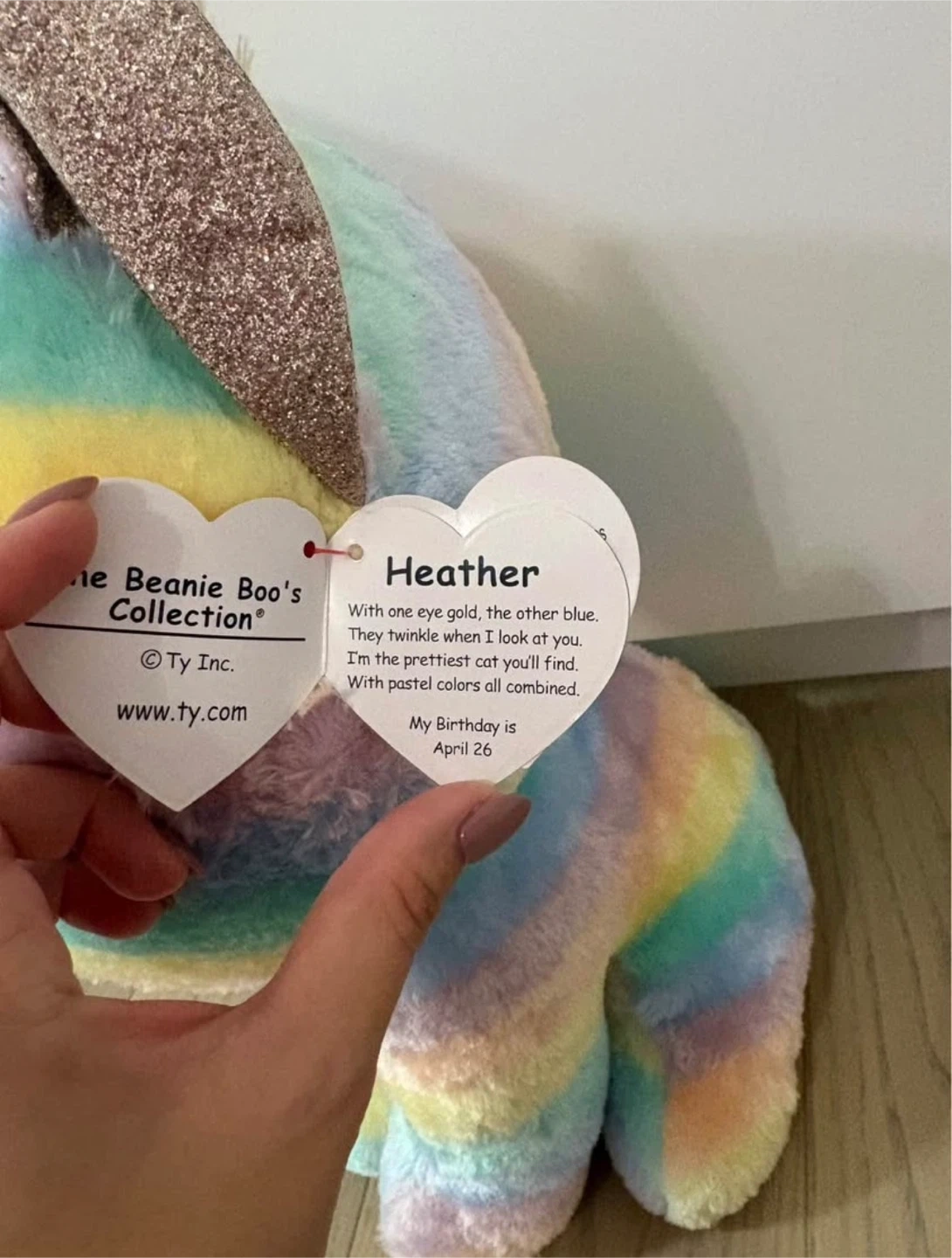 Selling a Ty Beanie Boos plush named Heather! It's a super cute cat with rainbow pastel colours and big glittery eyes. Perfect for any Beanie Boo collector or cat lover. Like new, still has tags. It was just displayed and never played with.