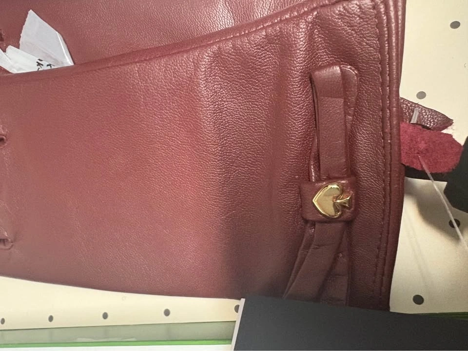 Authentic Kate Spade New York womenβs leather gloves, size XL, in a beautiful rich burgundy/brown tone with the signature Kate Spade spade detail.