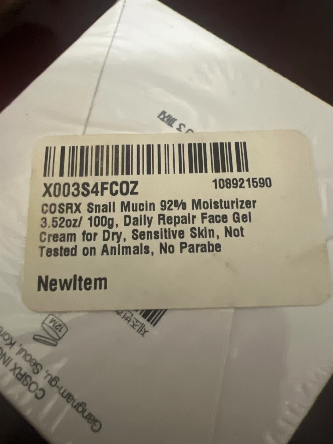 I'm selling a new Cosrx Snail Mucin 92% All in One Cream! This cream is formulated with 92% snail secretion filtrate (mucin), helping to naturally create the appealing glow of healthy skin. It's a daily repair face gel cream for dry and sensitive skin. The size is 3.52oz/100g