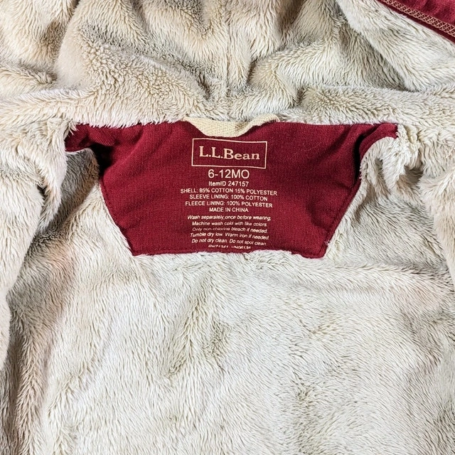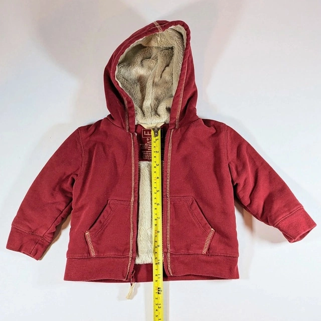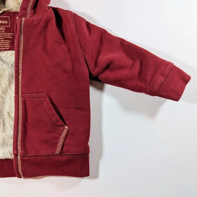 Kids Fleece Lined Cozy and classic, this LL Bean Full-Zip Hoodie in dark red/burgundy is perfect for keeping your little one warm and comfortable. Made for size 6–12 months, it features a soft fleece lining for added warmth and a full front zipper for easy on and off.