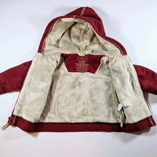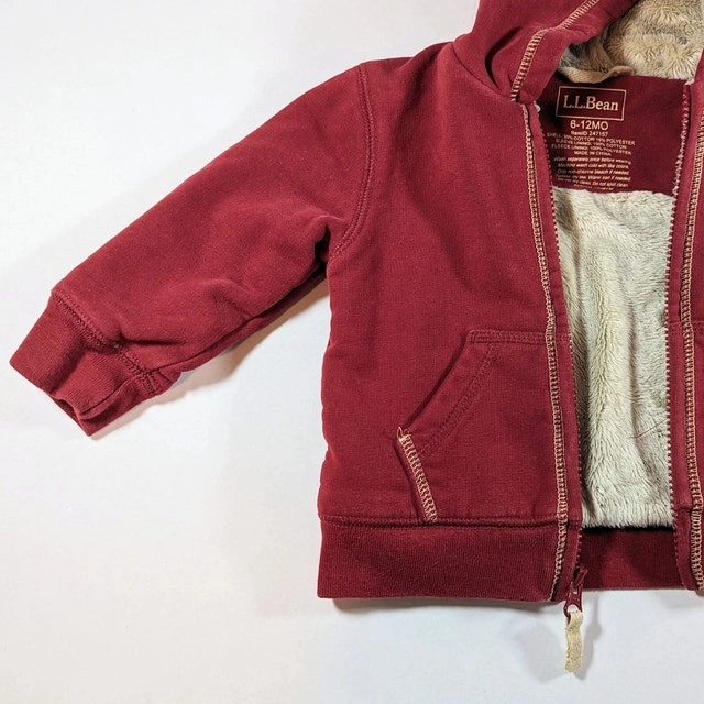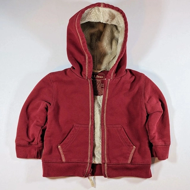 Kids Fleece Lined Cozy and classic, this LL Bean Full-Zip Hoodie in dark red/burgundy is perfect for keeping your little one warm and comfortable. Made for size 6–12 months, it features a soft fleece lining for added warmth and a full front zipper for easy on and off.