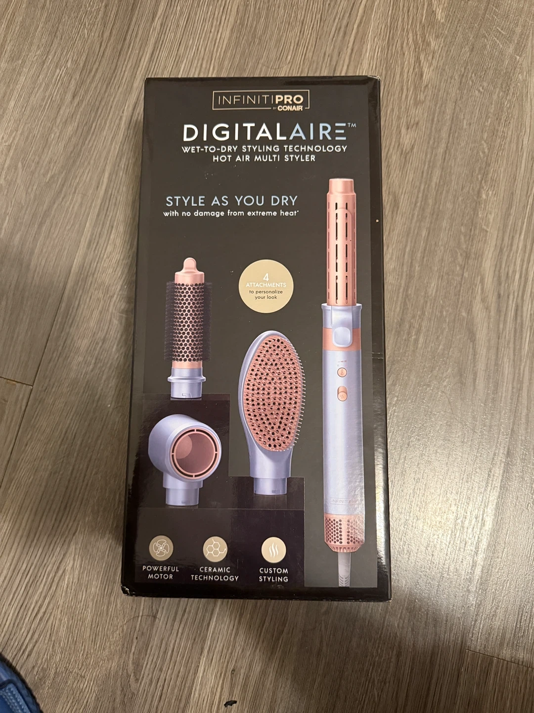 Selling a brand new Infinitipro by Conair Digitalaire Wet-to-Dry Hot Air Multi Styler! It comes with 4 attachments to personalize your look, and the original box is included. Originally bought for $129