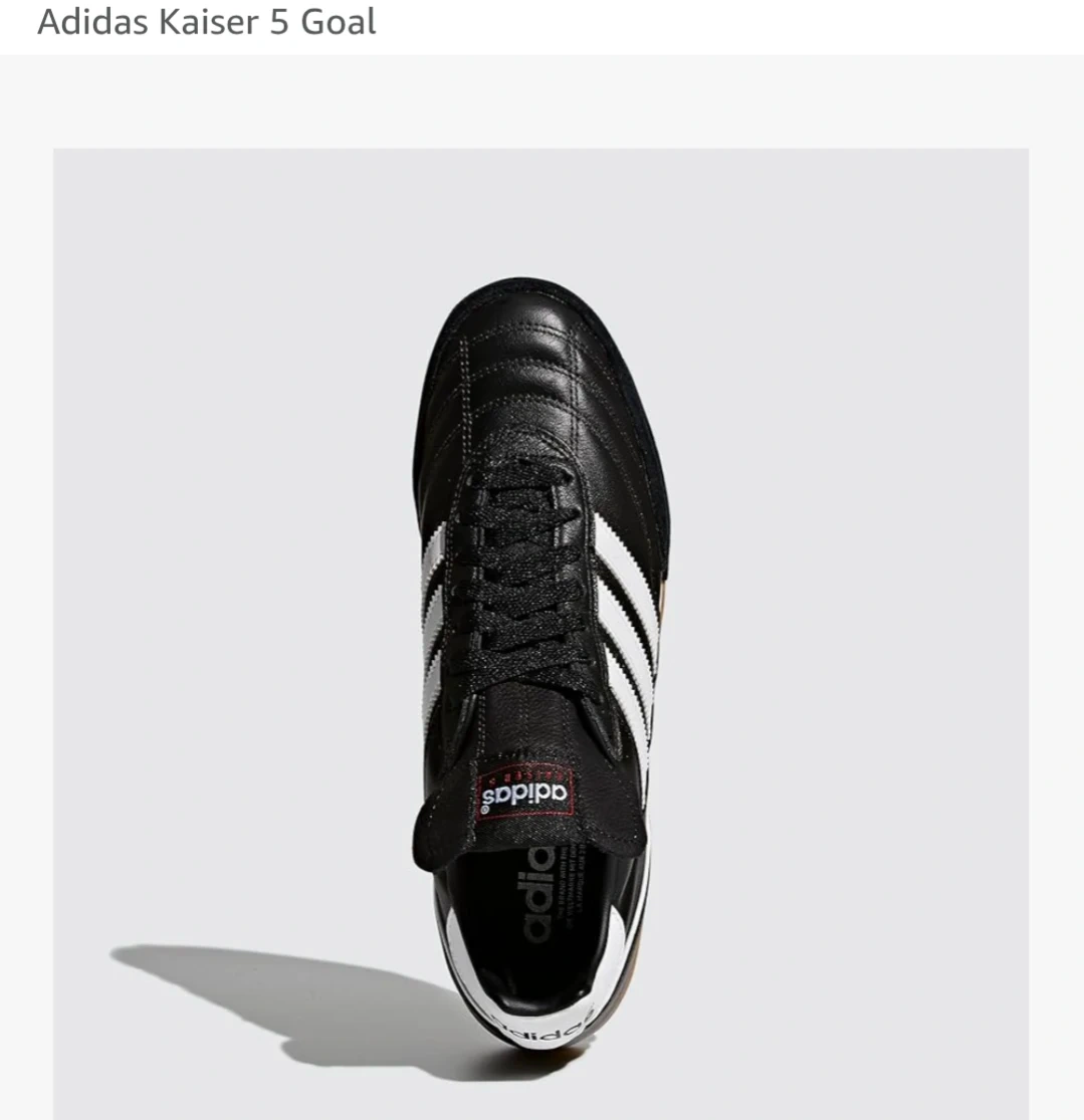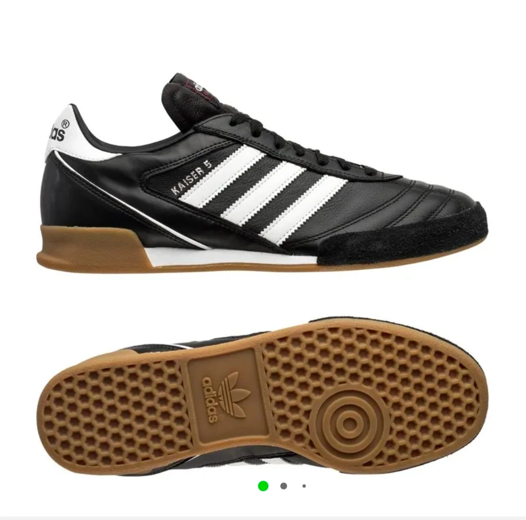 Selling a pair of Adidas Kaiser 5 Goal soccer shoes! They're brand new with tags attached and ready for the field. These classic black and white shoes are perfect for indoor or outdoor.