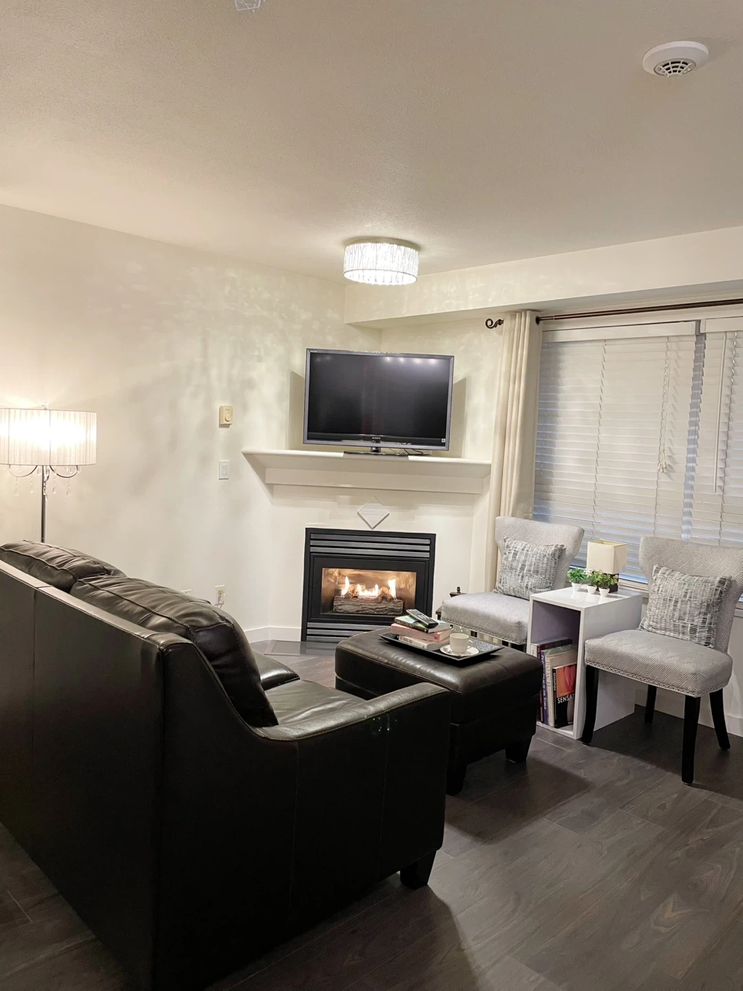 • Gas fireplace in living room. Warm in the winter cool in the summer.