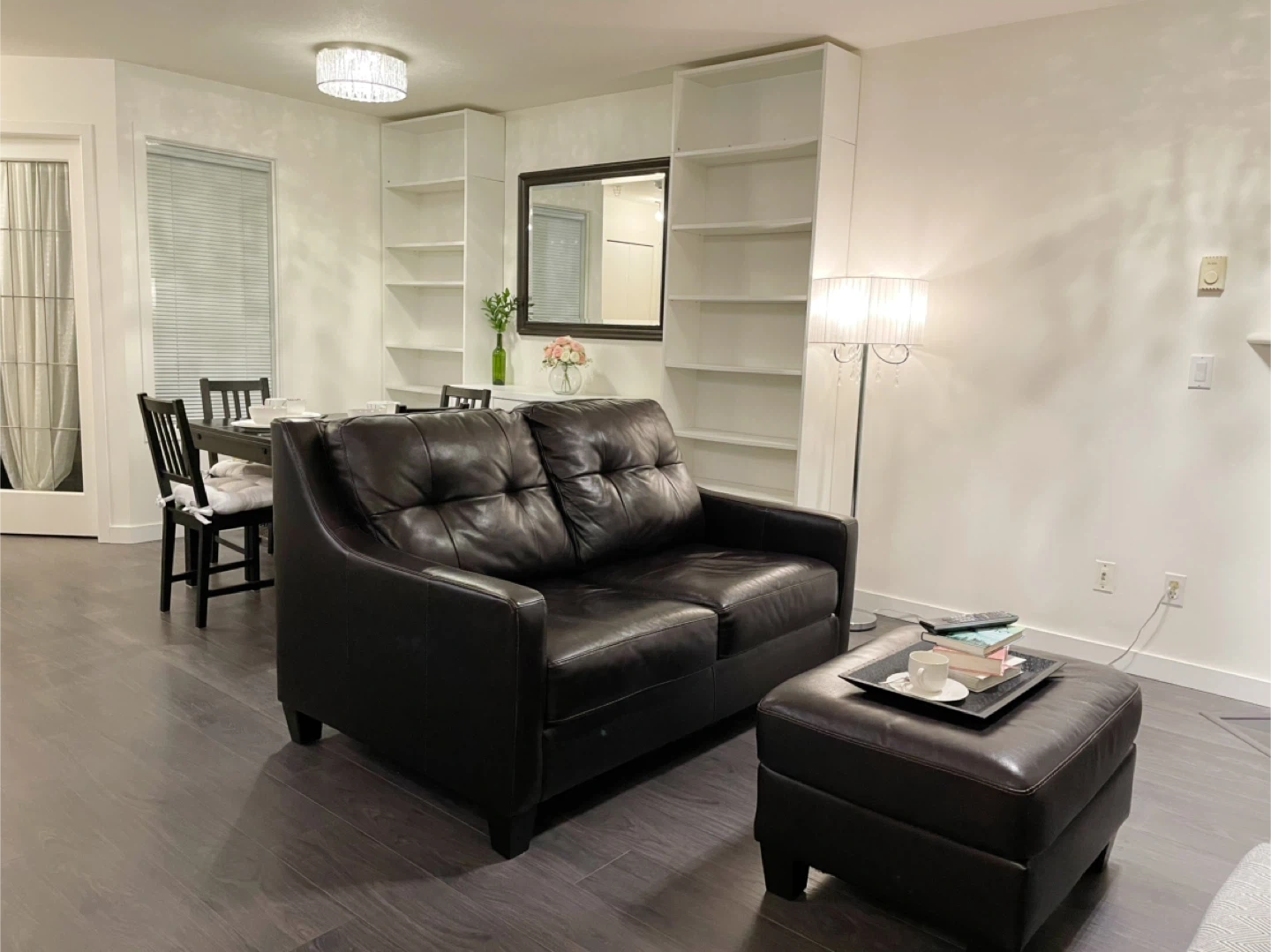 • Fully furnished with light fixtures: high end genuine leather sofa, TV, dining table set, double size bedroom set with bedding and brand new mattress