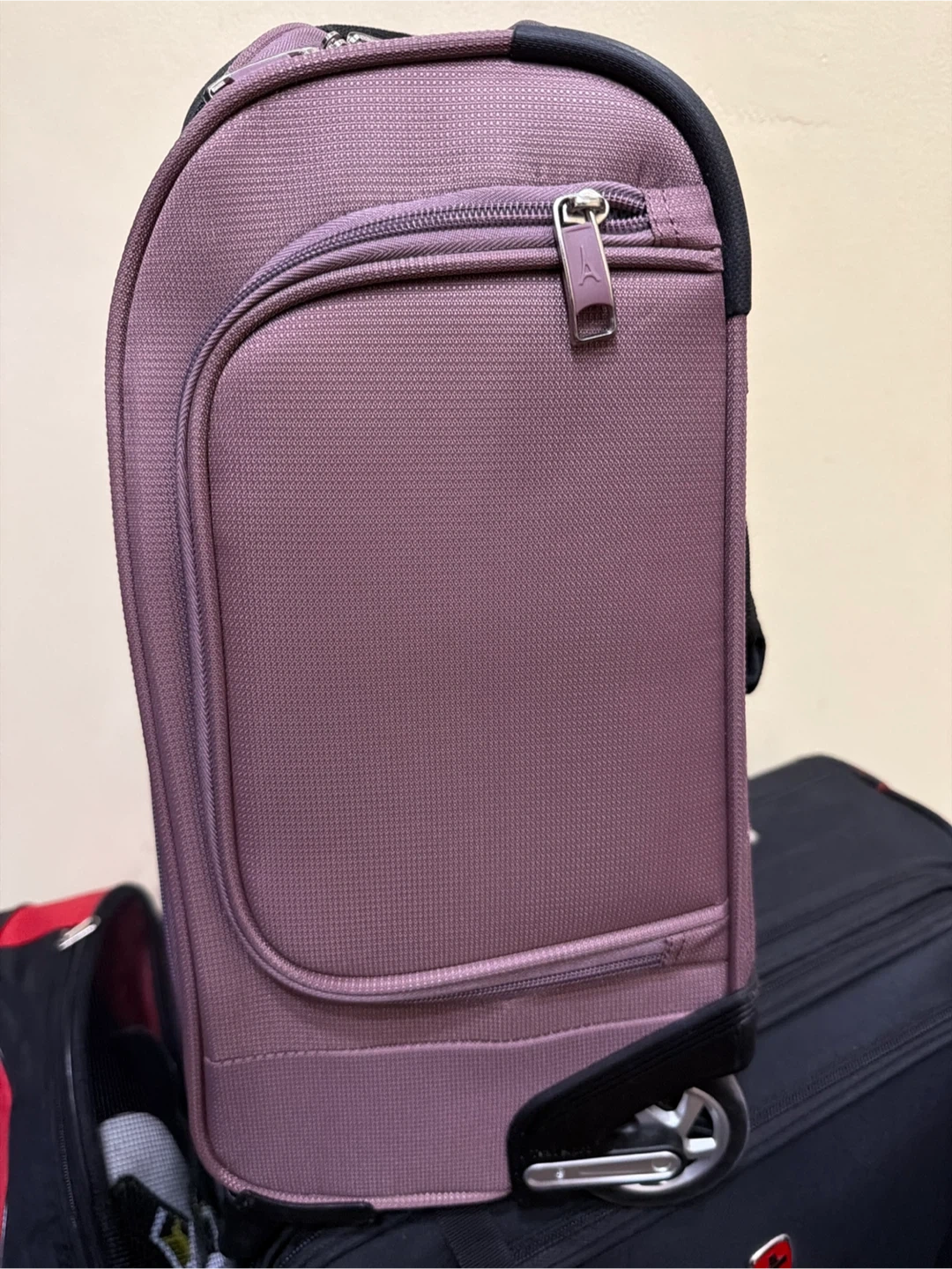 Selling a Travelpro Luggage Maxlite 5 Softside Lightweight Rolling Underseat Compact Carry on Upright 2 Wheel Bag, Men and Women, Orchid Pink Purple, 15-Inch. It's in great shape and ready for your next trip! The suitcase has a retractable handle and smooth-rolling wheels for easy maneuvering. The interior is spacious and well-organized, with multiple compartments to keep your belongings in place. Perfect for weekend getaways or business trips!