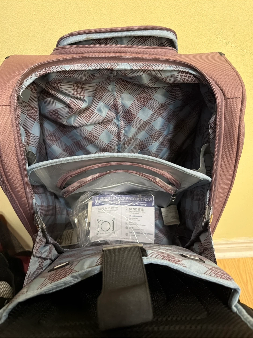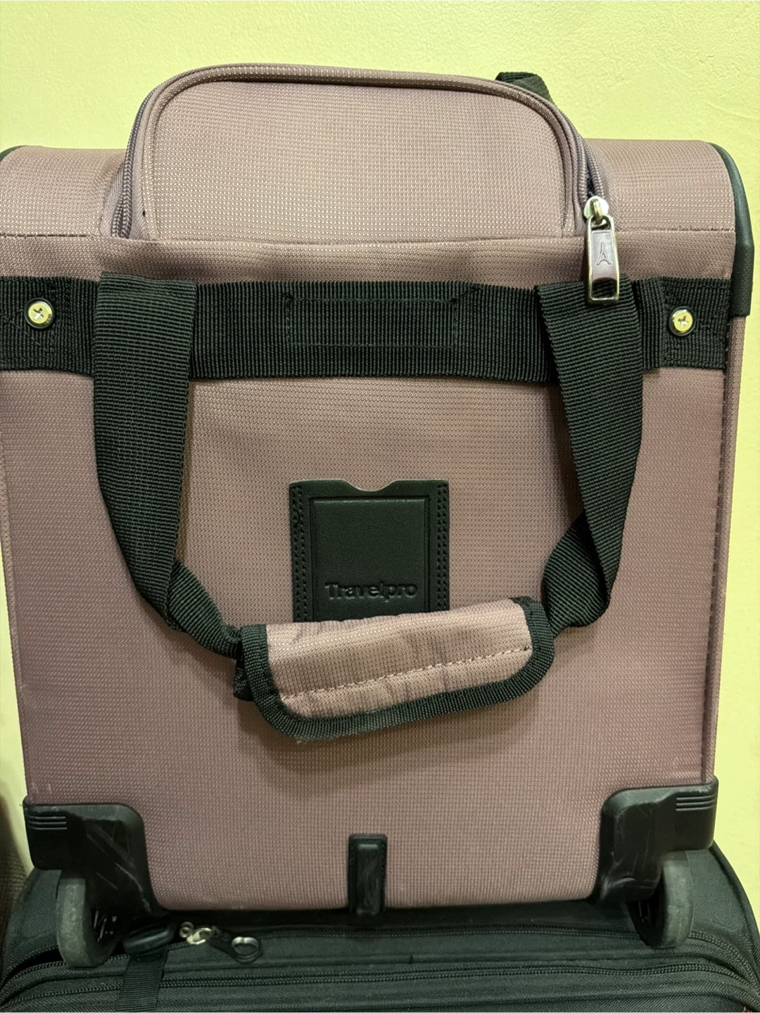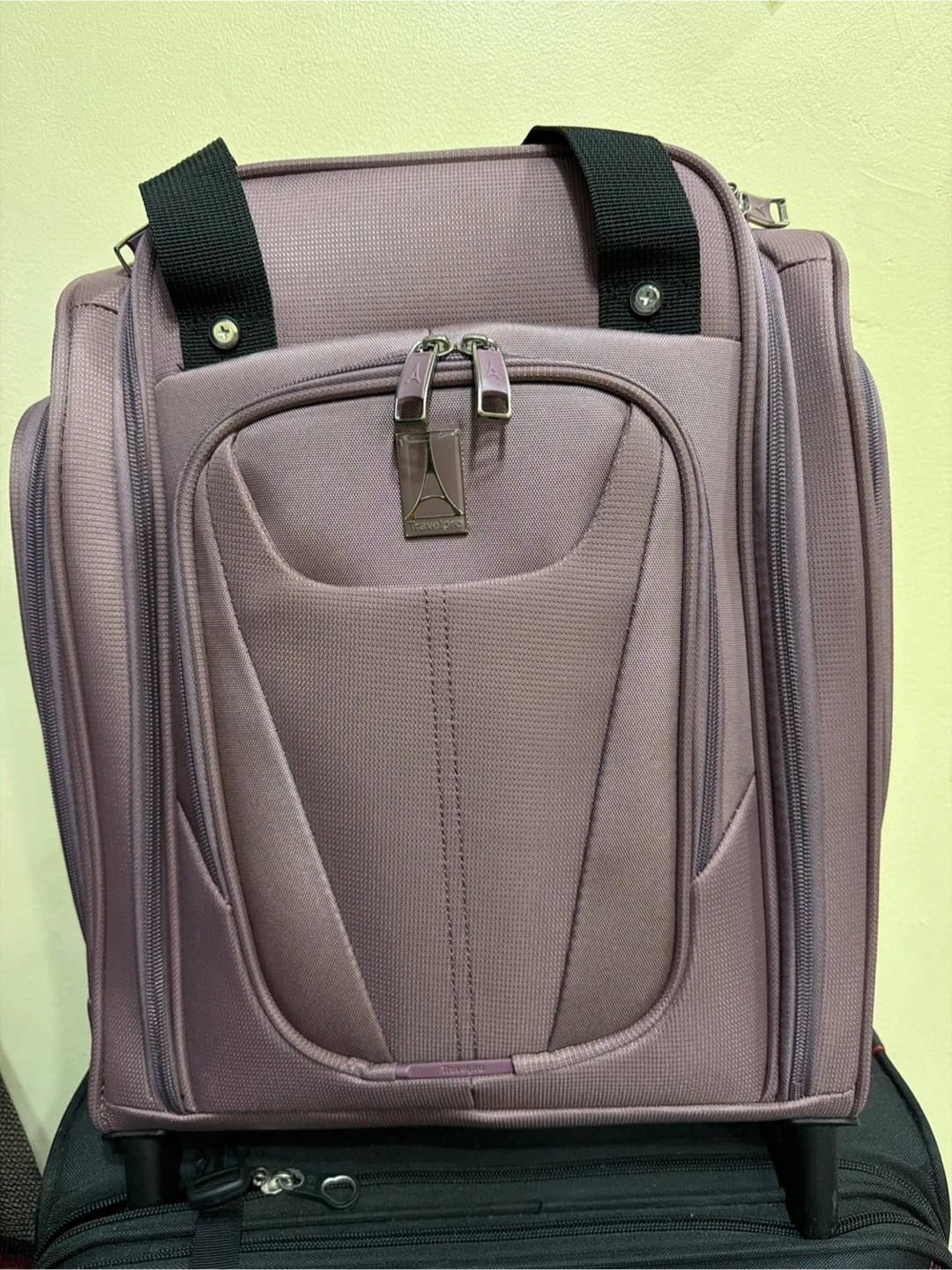 Selling a Travelpro Luggage Maxlite 5 Softside Lightweight Rolling Underseat Compact Carry on Upright 2 Wheel Bag, Men and Women, Orchid Pink Purple, 15-Inch. It's in great shape and ready for your next trip! The suitcase has a retractable handle and smooth-rolling wheels for easy maneuvering. The interior is spacious and well-organized, with multiple compartments to keep your belongings in place. Perfect for weekend getaways or business trips!