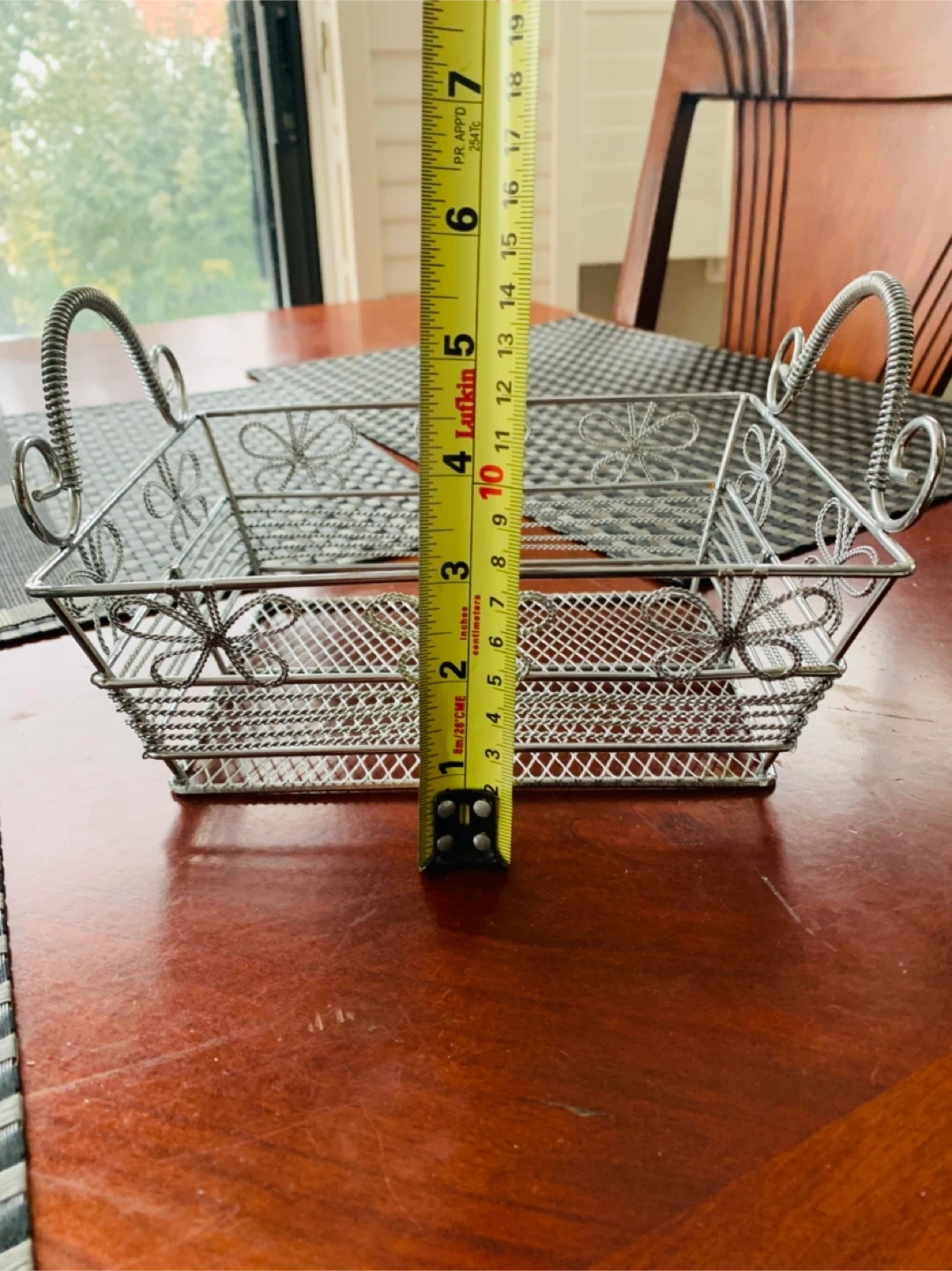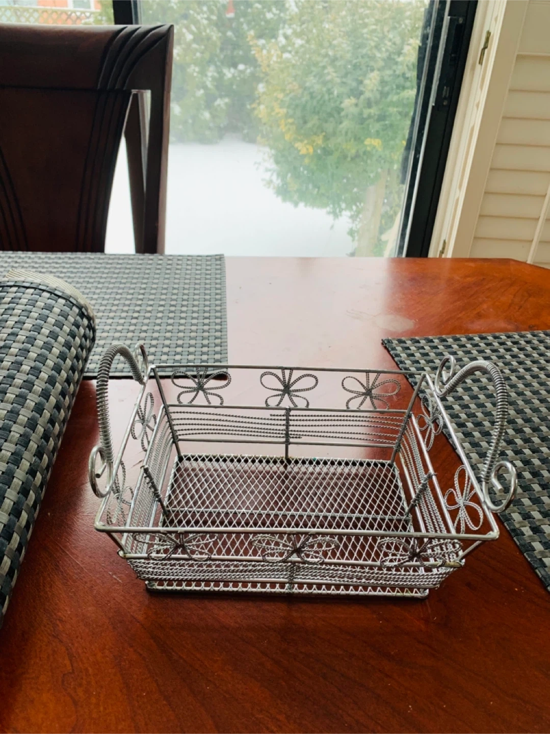 Decorative wired basket very sturdy and has a bit of weight to it. Can be used for many things…was using to keep make-up items. Selling for $5 CAD firm. Smoke Free Home.