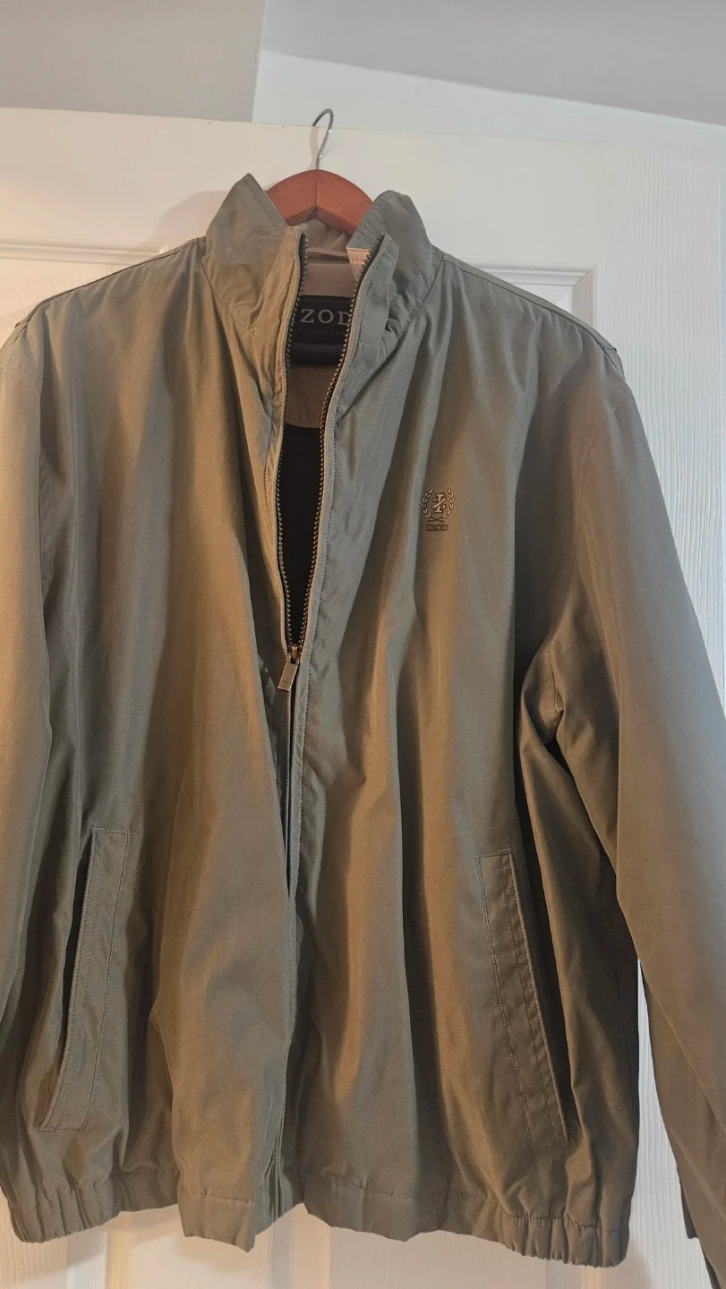 Selling a gently used IZOD men's jacket in size Medium. It's a neutral, versatile colour that would pair well with anything. It's in great condition and ready for a new owner!