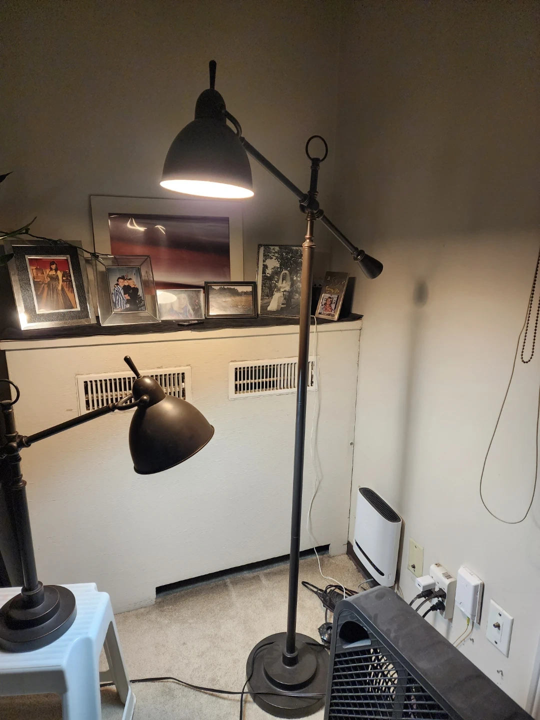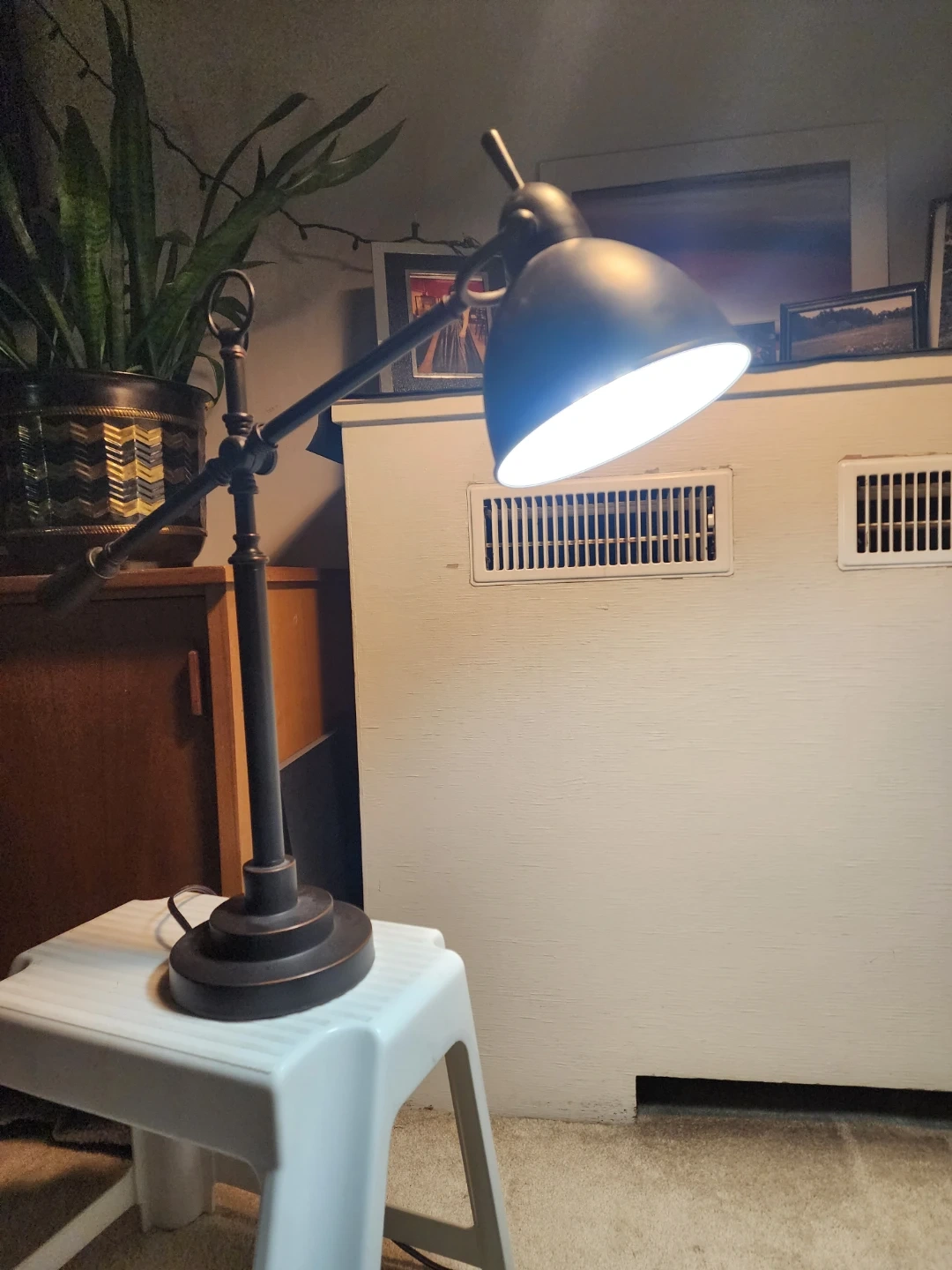Selling a used adjustable floor lamp and matching table lamp It's bronze metal and in good working condition. Perfect for adding some extra light to any room! Floor lamp step on light switch needs a little wiggle from time to time