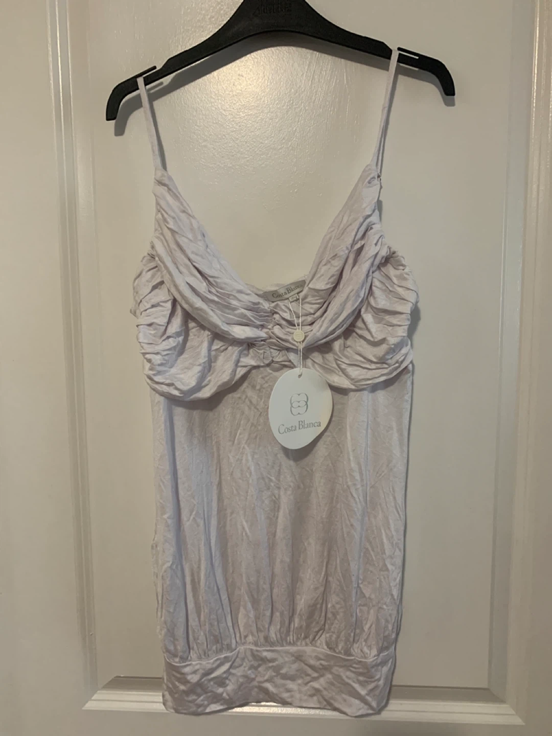 Selling a brand new Costa Blanca cami top, still with tags! It's a beautiful piece, perfect for layering or wearing on its own. The material is soft and flowy, making it super comfy for everyday wear