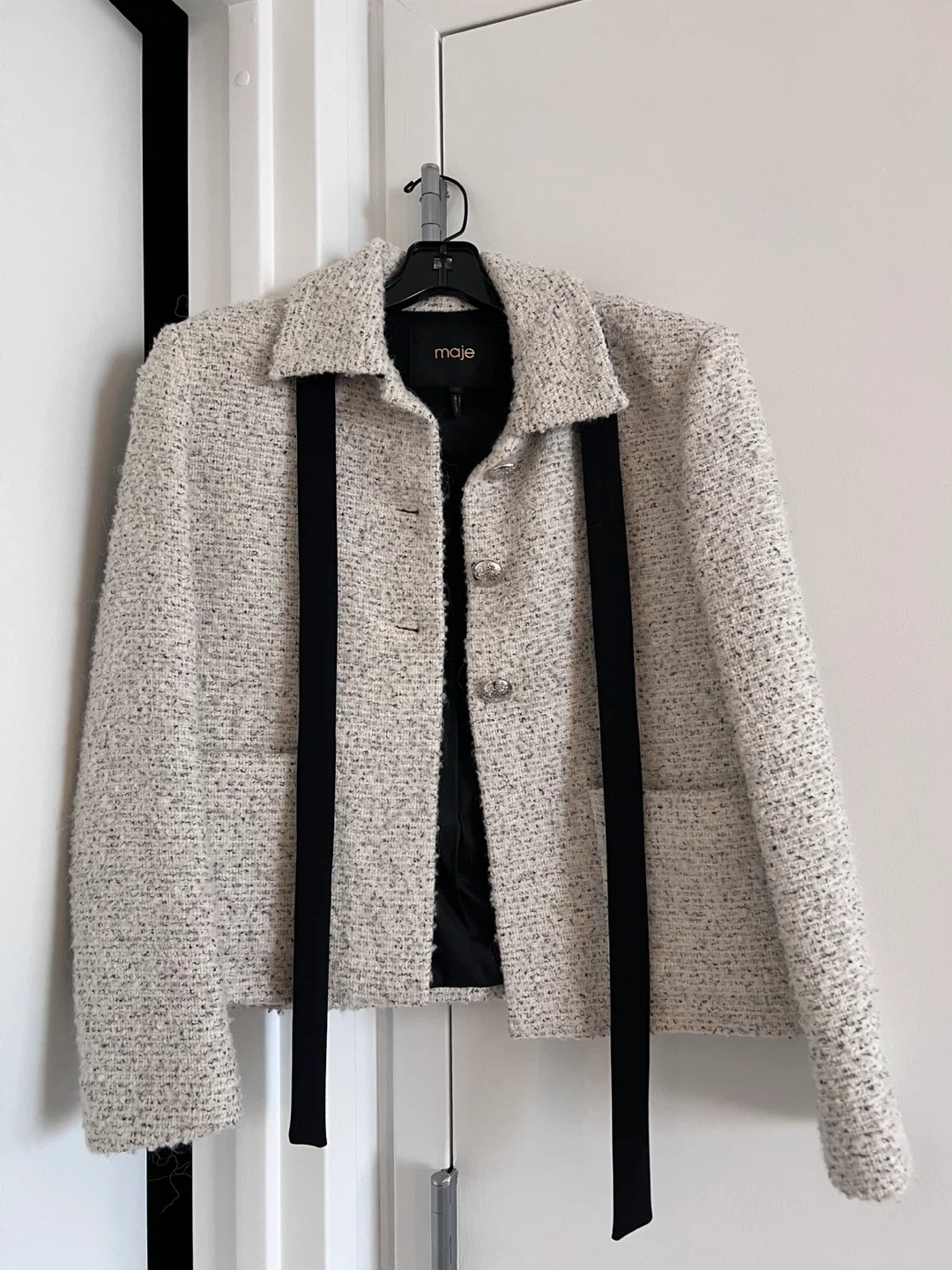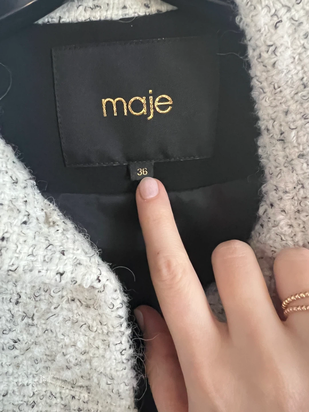 Selling a Maje tweed jacket in size small, 36. It's a beautiful jacket with a unique design. Perfect for adding a touch of elegance to any outfit!