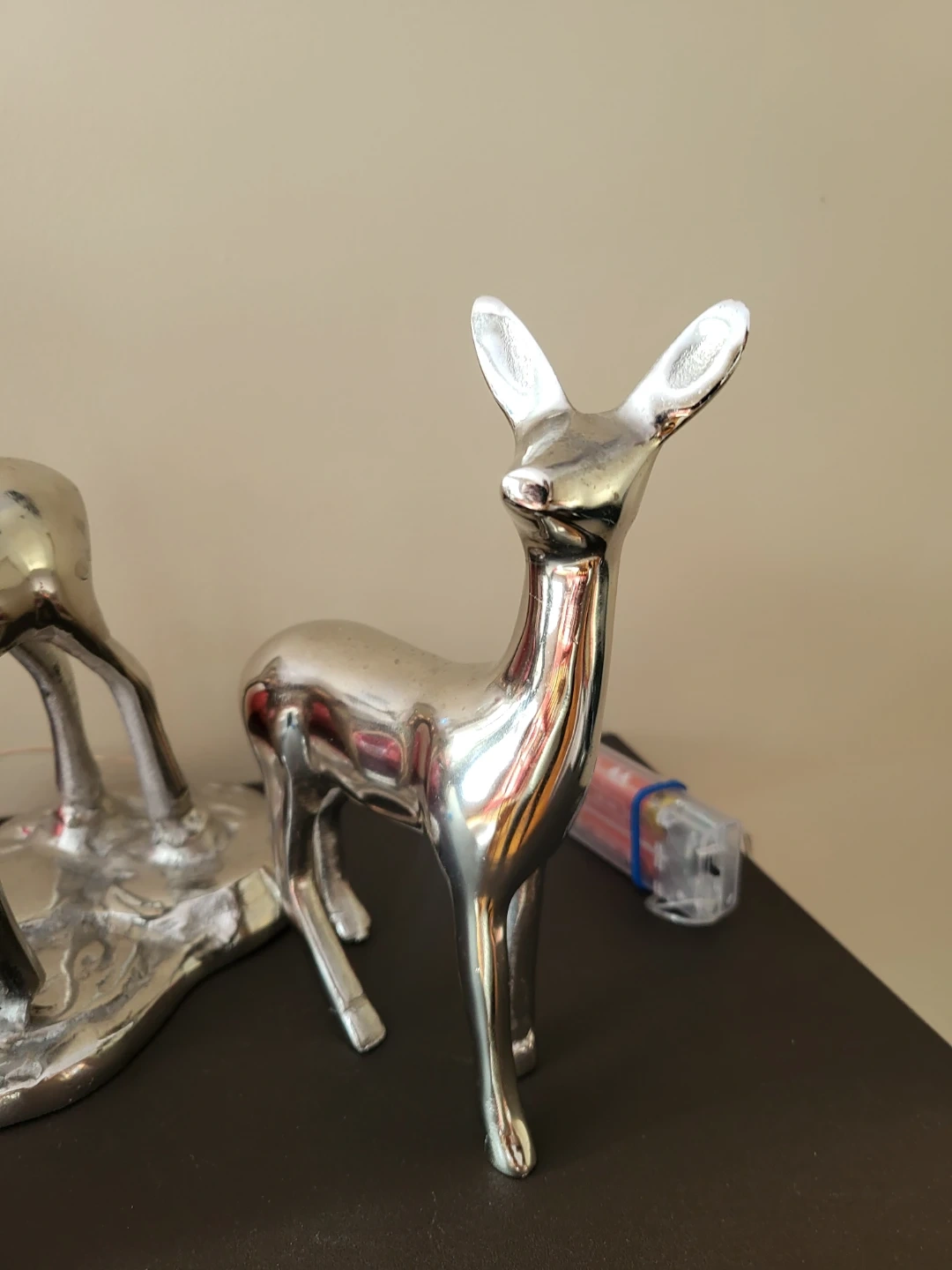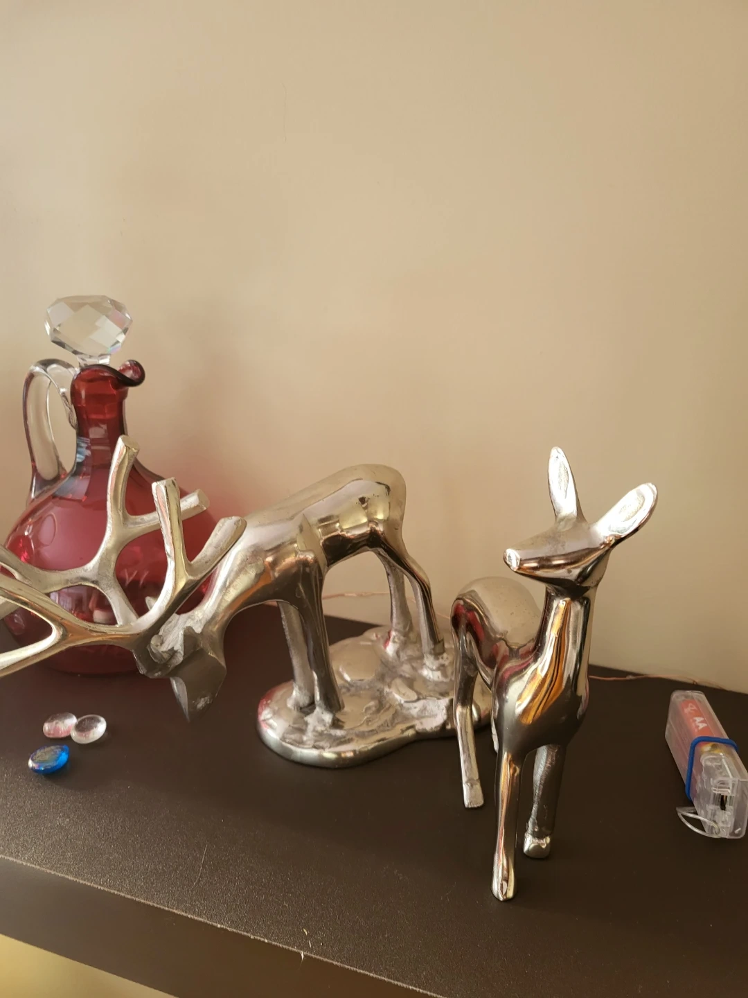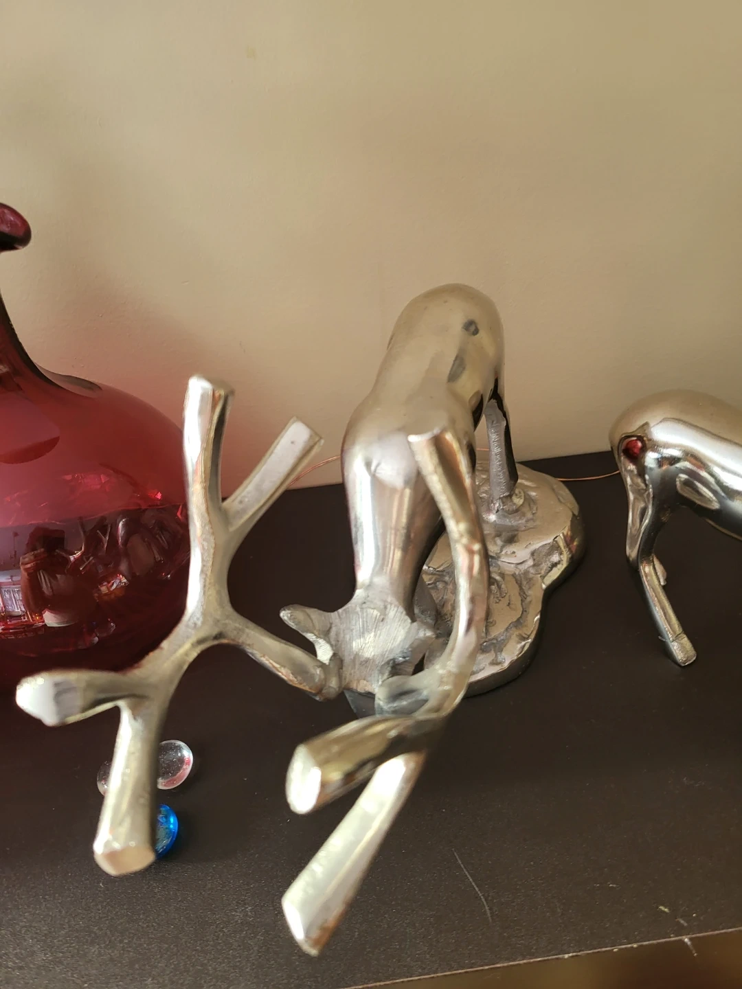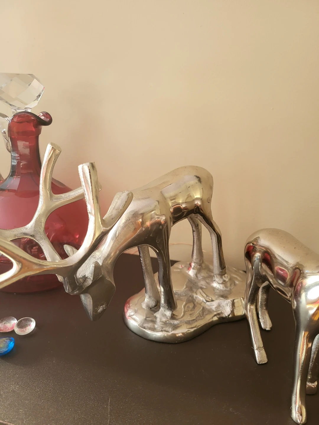Selling some silver metal deer figurines! Selling as a set. They would look great on a shelf or mantle. They're in good condition and ready for a new home.