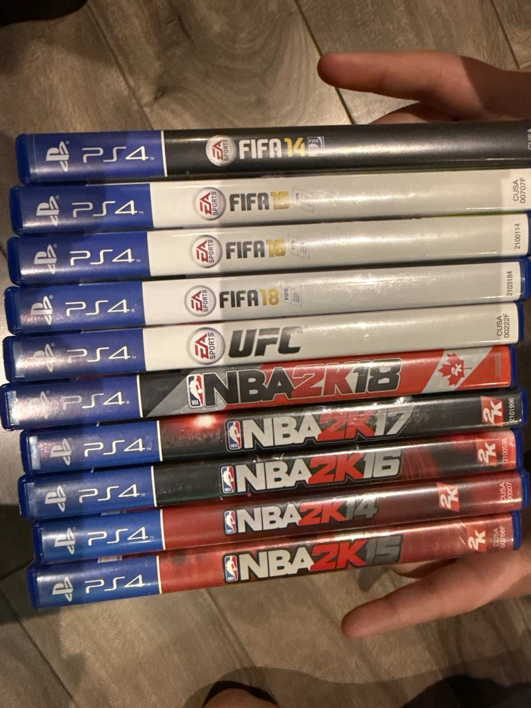 Buy & SellPS4 Games Bundle: NBA 2K & FIFAPS4 Games Bundle: NBA 2K & FIFA$10Selling a bundle of PS4 games! Includes various NBA 2K and FIFA titles. Great for any sports game fan looking to expand their collectionConditionGoodWHERE TO MEETRichmond hillView MapSELLERverifiedKarinRichvale600 reviews3 chats·1 favorites·28 viewsSEND CHAT TO SELLERHi Karin! I’m interested in your listing.Hi Karin! I’m interested in your listing.Get the Karrot app to chatSign In to chat