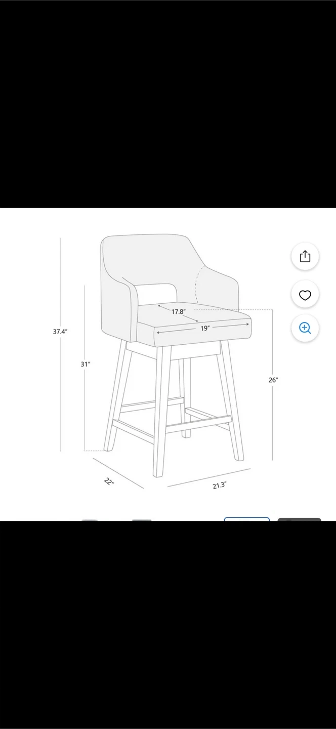 Brand new Selling a set of two CHITA swivel counter bar stools! They feature a contoured back and wood legs, with a fabric in gray. These stools are 26 inches in height, perfect for a counter or bar area. They're in great condition and ready for a new home!