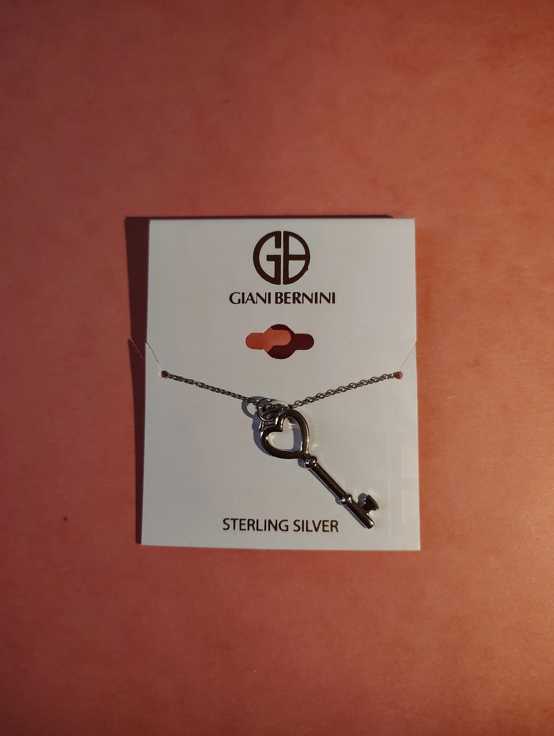 β¨.925 Sterling Silver Heart Shaped Key Pendant Necklace β¨