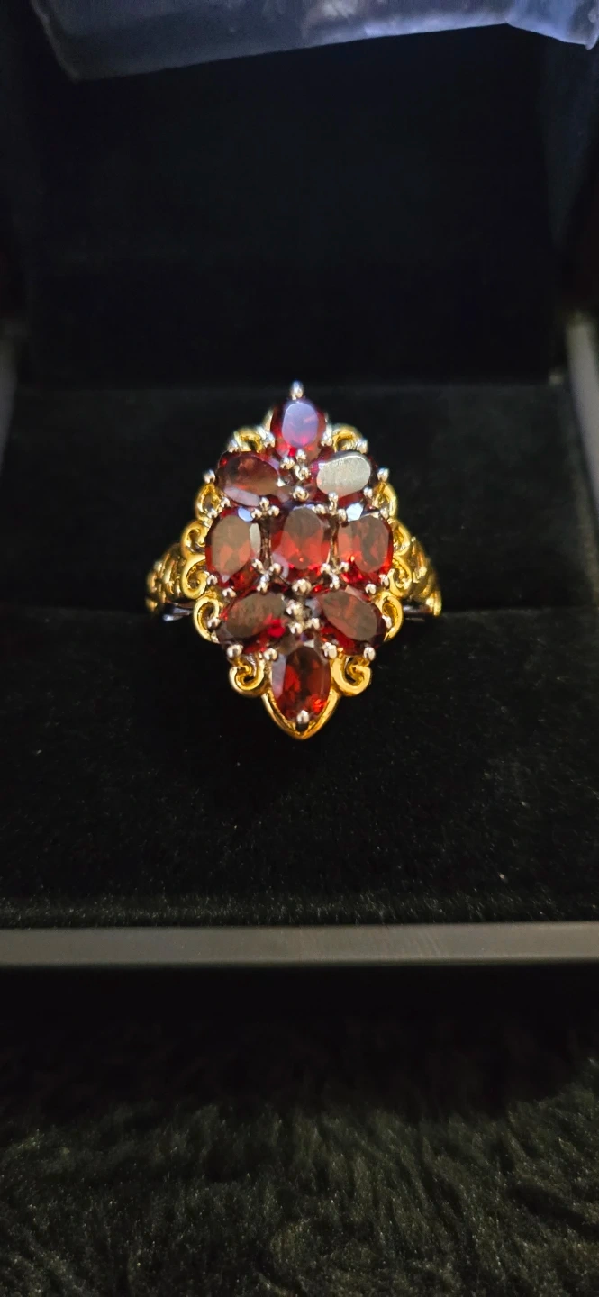 Selling a beautiful Mozambique Garnet 4.75ctw ring in 18K YG Plated and Platinum Bond. It's a lovely piece that would make a great addition to any jewelry collection
