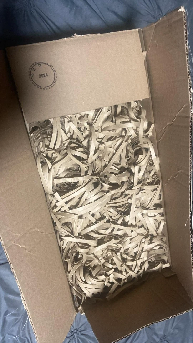 half a roll of paper for cushioning the bags. (some of the roll shredded already in a box, box included)