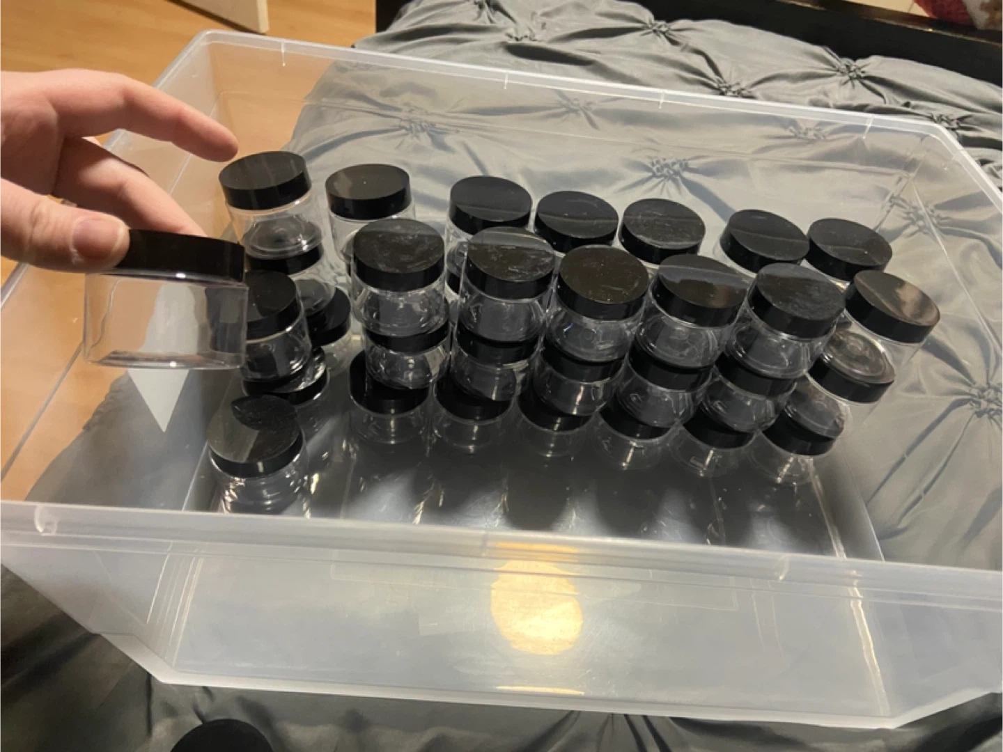 sample black lid containers, 43 in total, holds 2 fluid oz (out of their wrap but never used)