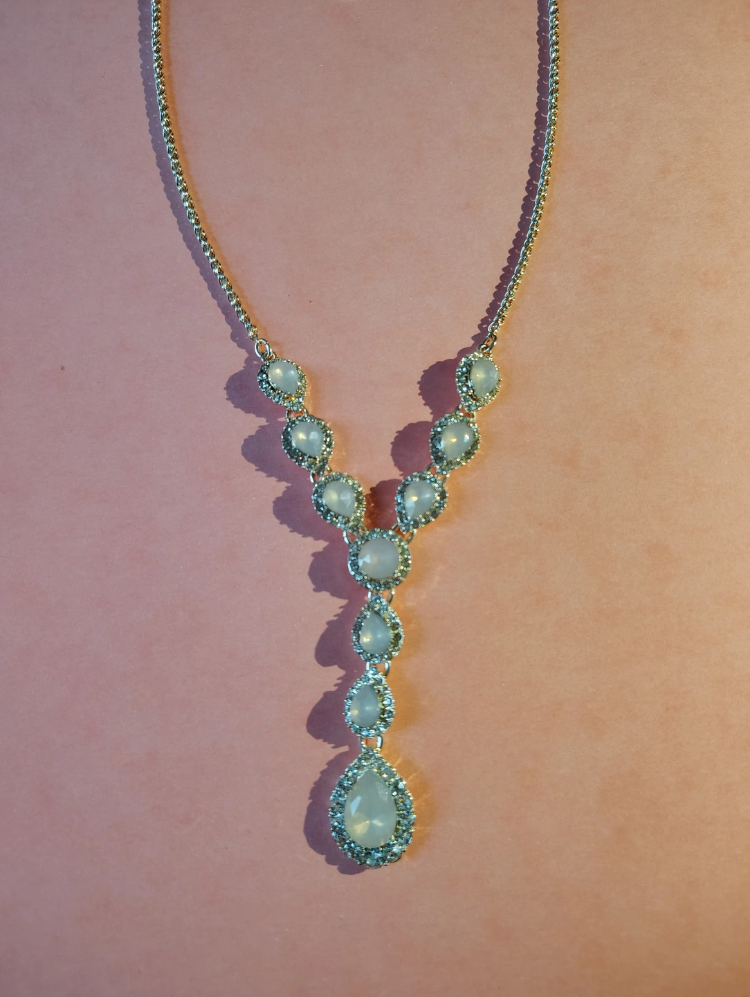 ✨Rose Gold Tone Rosewater Opal Crystal Y Necklace ✨