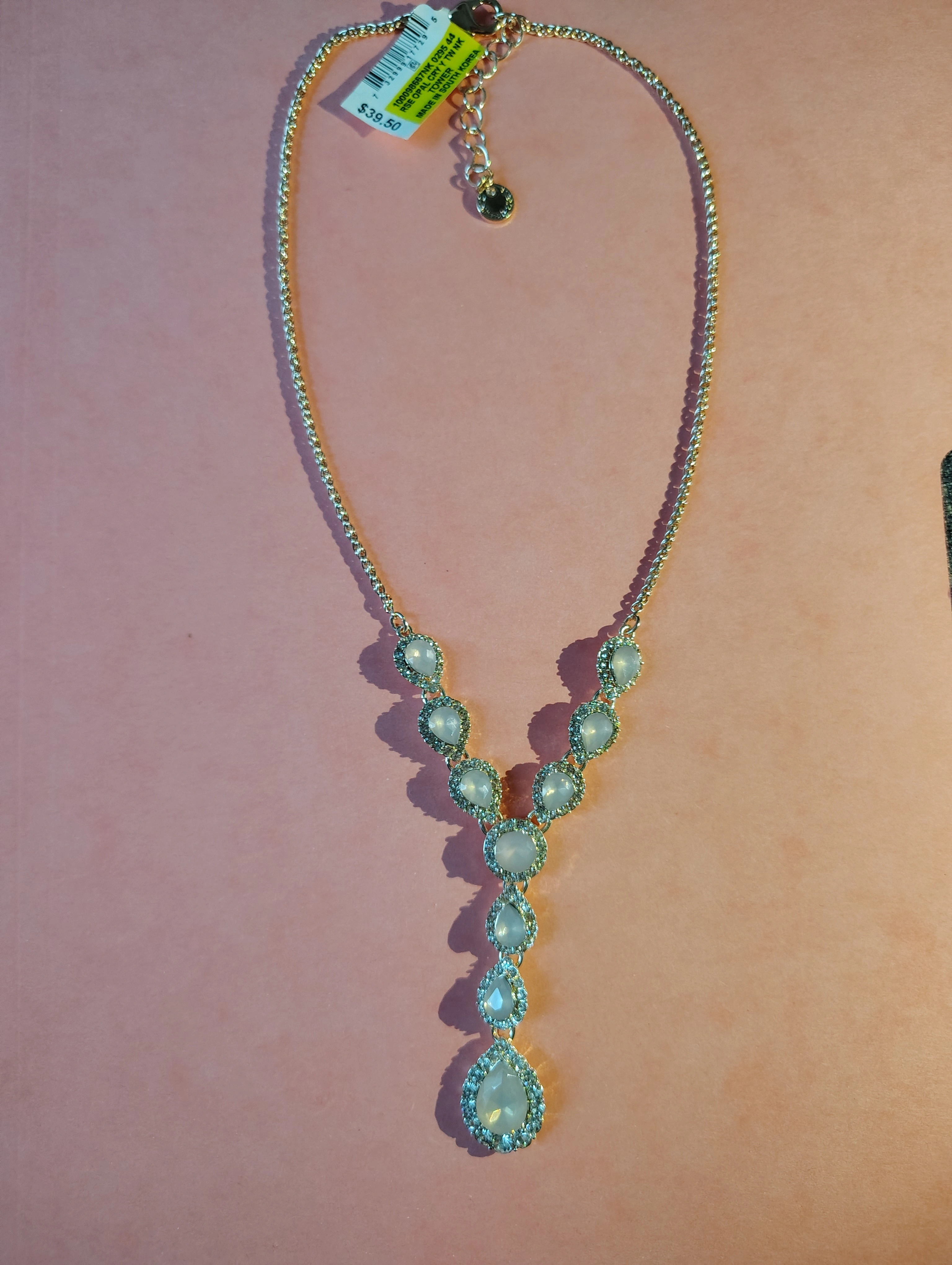✨Rose Gold Tone Rosewater Opal Crystal Y Necklace ✨