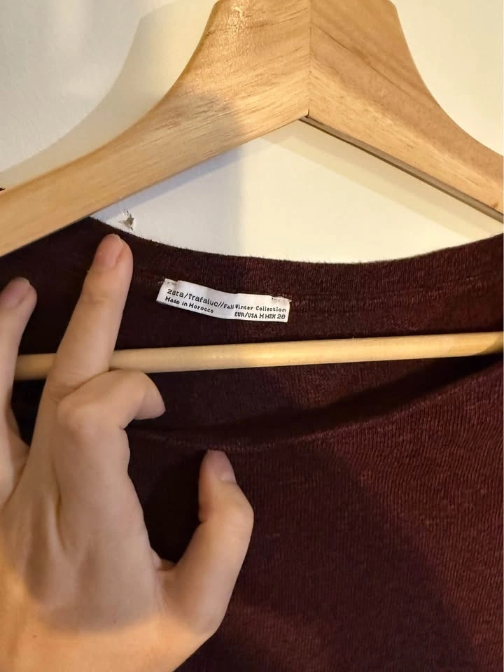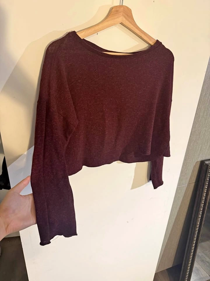 Zara Trafaluc Fall/Winter Collection cropped knit top in a rich burgundy colour — size M. Lightweight, soft knit with a relaxed cropped fit. Well taken care of, no noticeable flaws. Priced at $15.