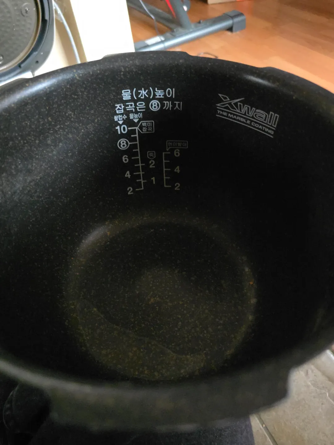 Selling an Cuckoo rice cooker inner pot. It has markings for water levels for different types of rice, including white rice and brown rice. CRP-HDG1061SP