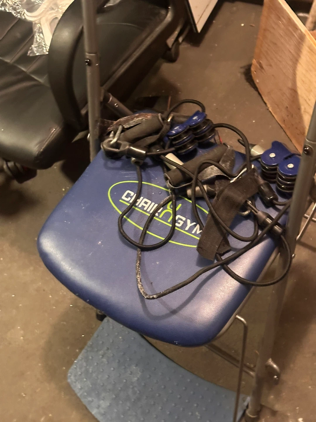 Selling a Chair Gym total body exercise system. It is a lightweight and portable system that can help you get a full body workout at home. Perfect for small spaces!