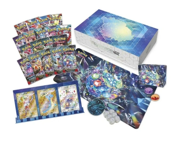 Price firm! Fully Sealed Terapagos Ultra Premium Collection. Great value! This would be a perfect gift for any Pokemon fan! Comes with: - 18 booster packs (4 from Twilight Masquerade, 2 from Temporal Forces, 4 from Paradox Rift, 4 from Obsidian Flames, and 4 from Stellar Crown) - 3 Gold Promo Cards - A bunch of accessories Pick up Scarborough or I can drop off for $10 Check out my other listings