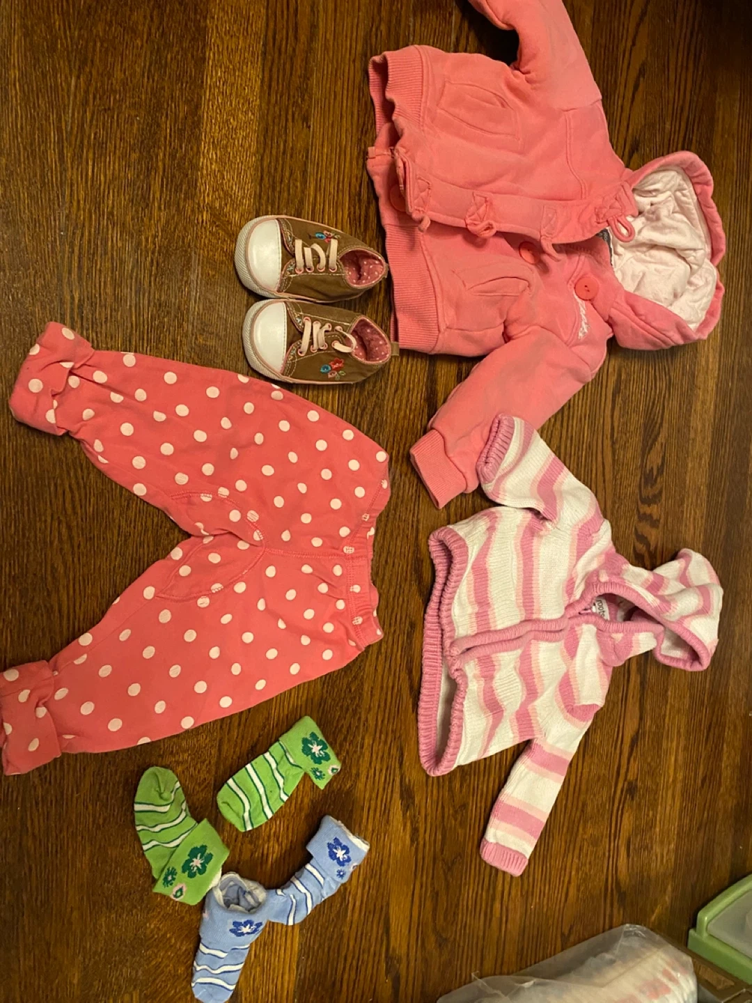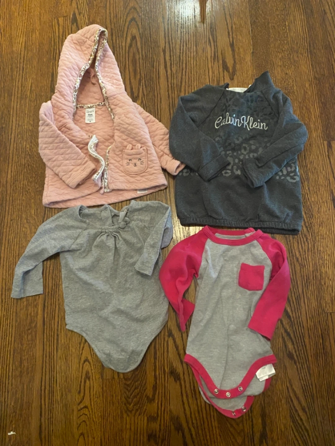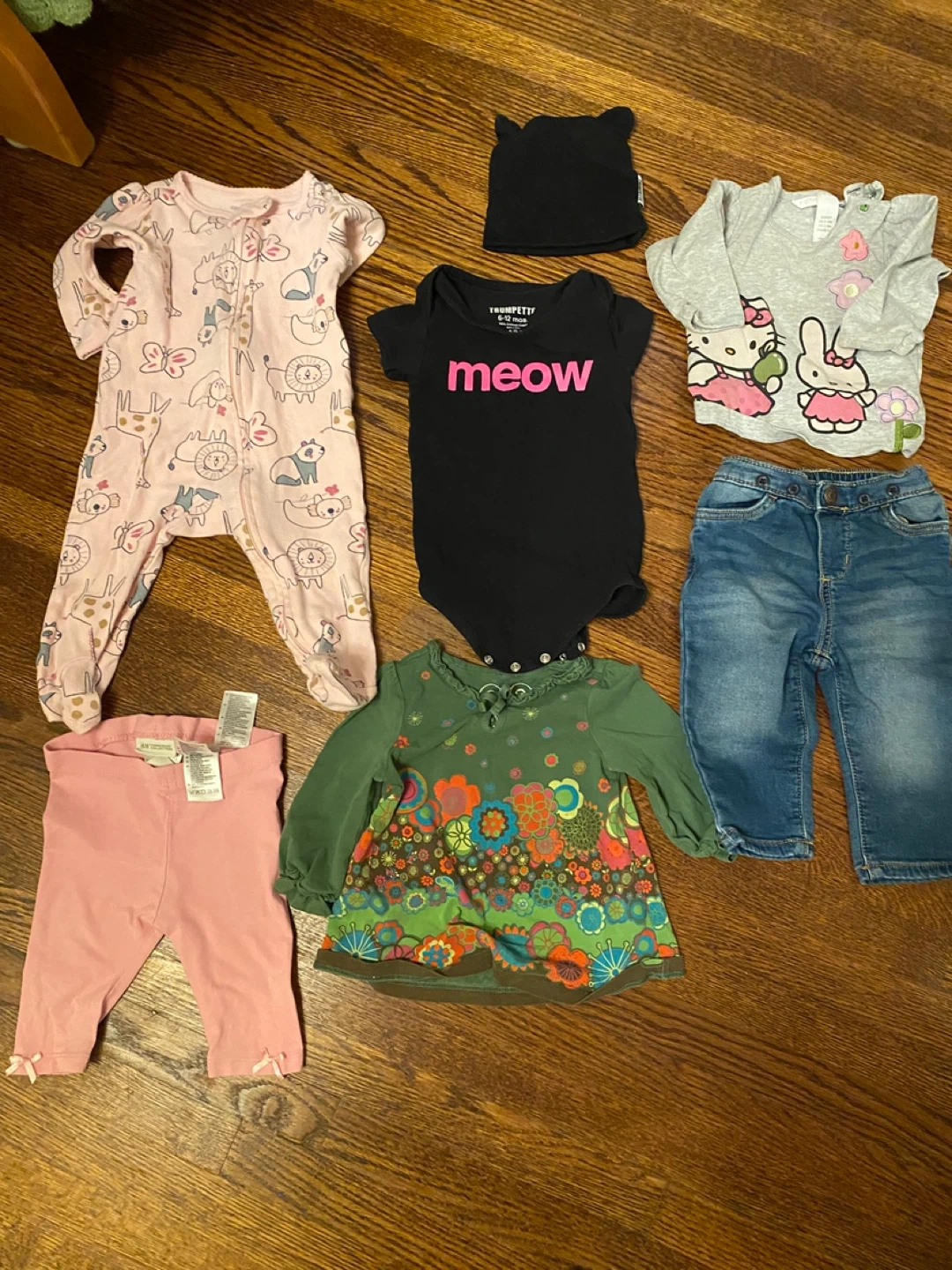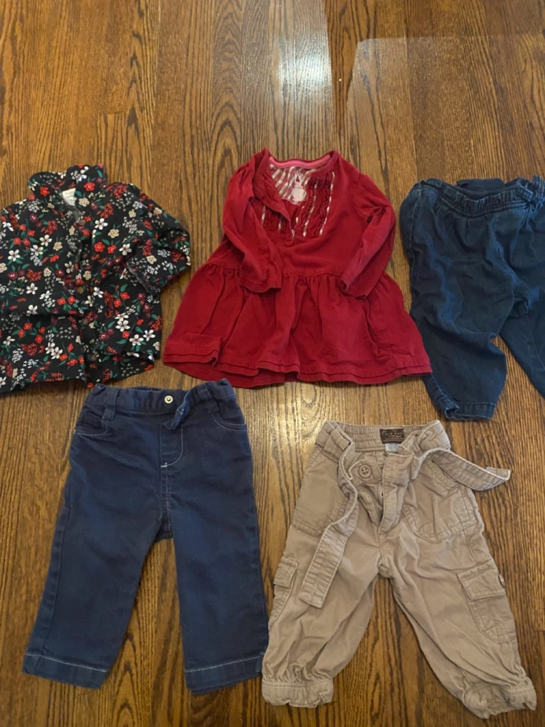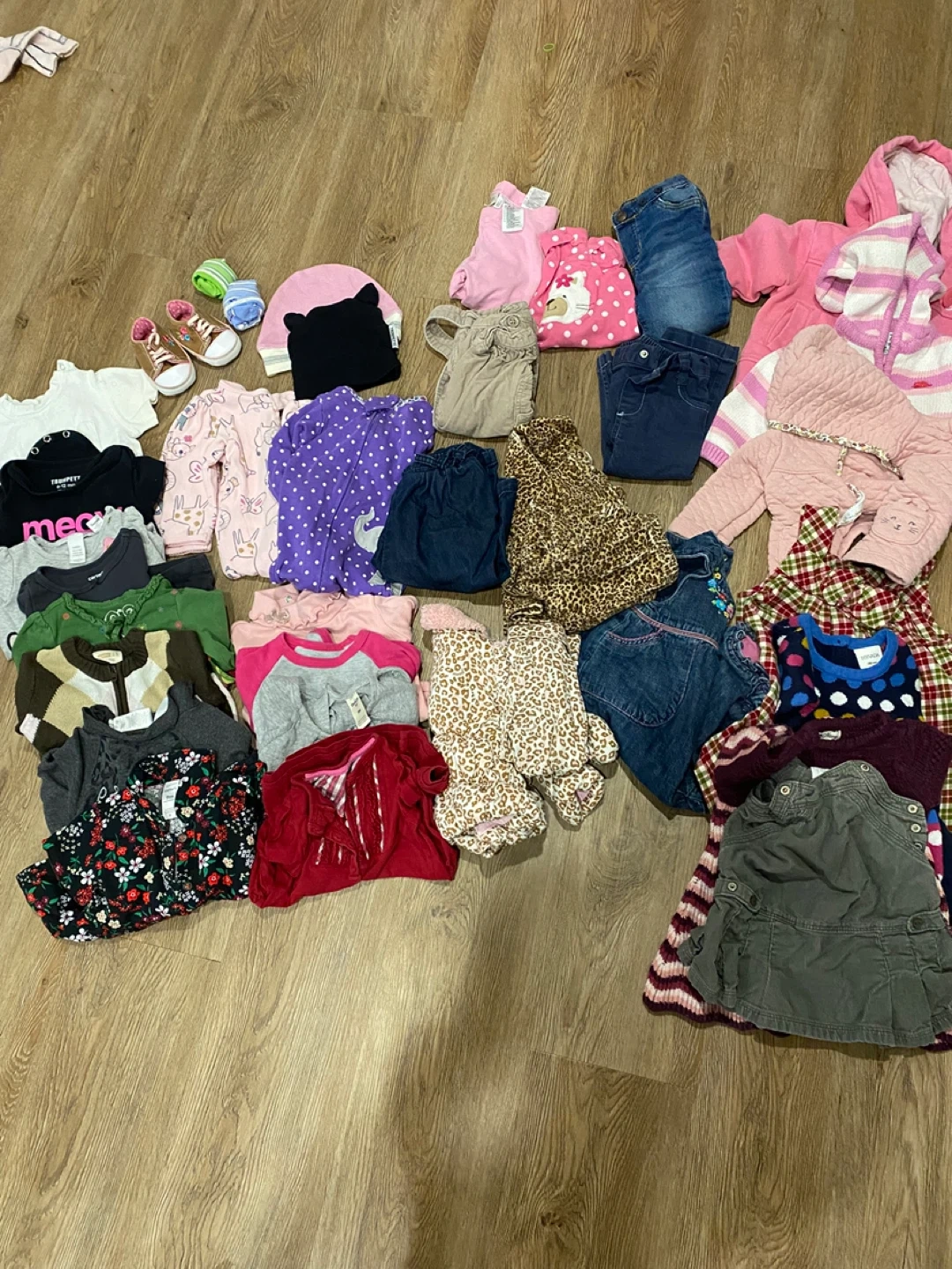 Selling a bundle of mixed baby girl clothes, 30+ pieces in total. Most items are in the 6-12 months range. There are a few items that are 3-6 months, but fit was more like 6-9 months on my daughter. Please note that the purples Roots set is has some very mild discolouration. Brands: roots, children’s place, guess, carters, old navy, and Gap There are a variety of styles included in this bundle, please refer to picture for more details. All the clothing here is good for fall, winter and/ spring. It would not be ideal for the warmer summer months. Perfect for stocking up on baby essentials!