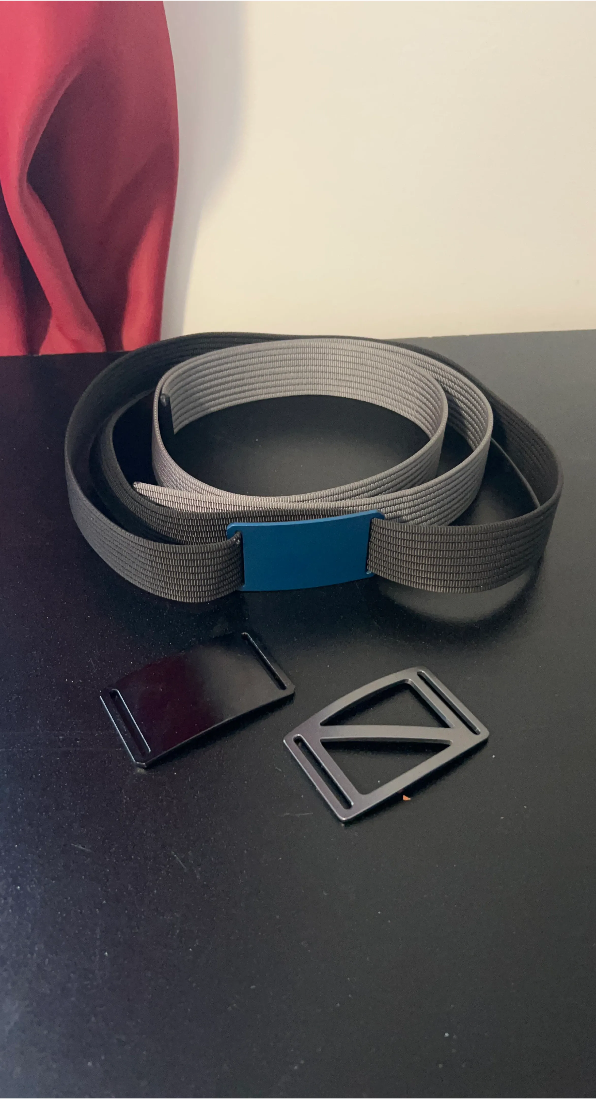 Selling two Grip6 belt that comes with theee buckles! Buckles are black, grey, and blue. Belts are black and grey. Not including the buckle, the belts are each 41 inches.